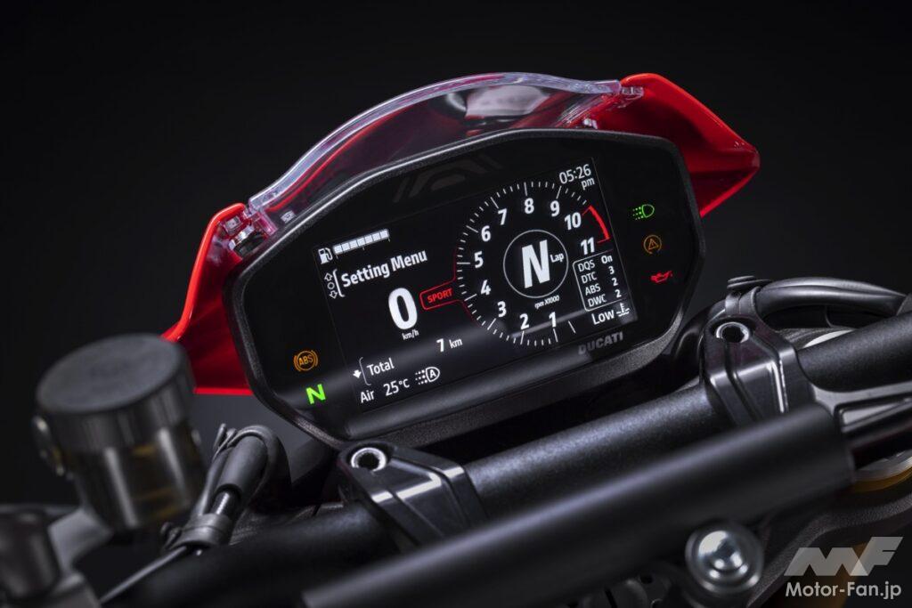ベースモデルは「モンスターSP」となる。937cc水冷V型(L型)2気筒DOHCエンジンを搭載したコンパクトなモンスターで、最高出力111PS(82kW)/9250rpm・最大トルク93Nm(9.5kgm)/6500rpmのスペックを発揮する。