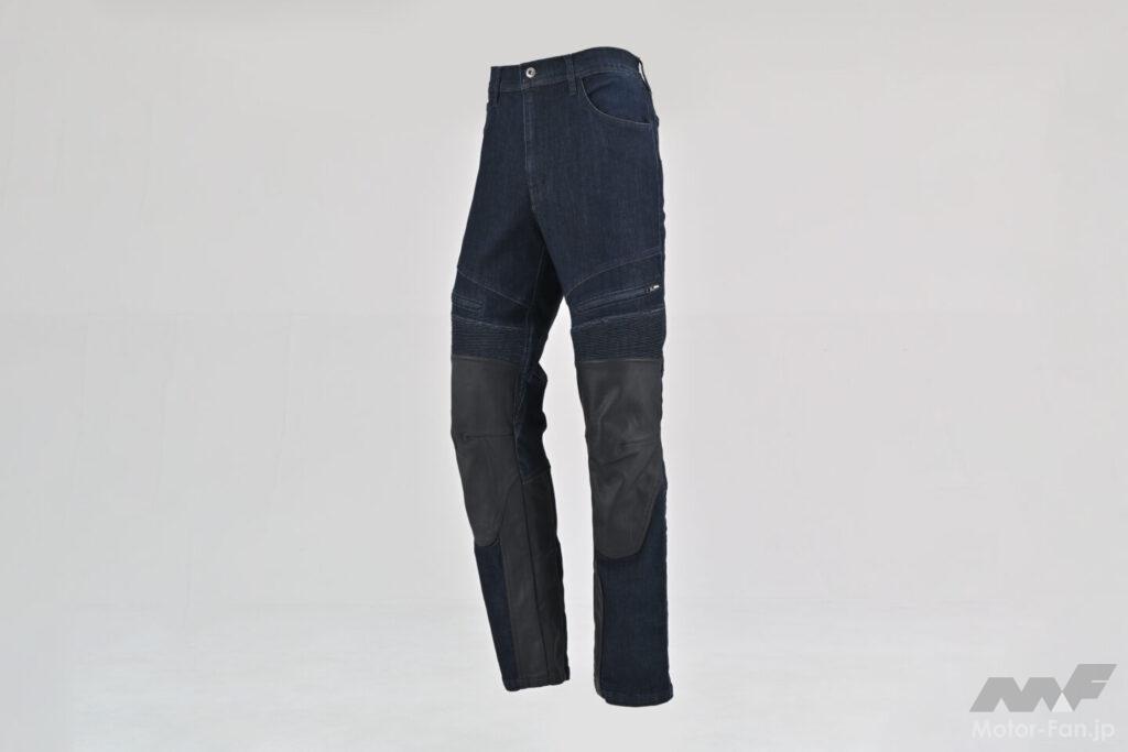空冷バイクや旧車乗りの悩みの一つがエンジンからの熱。薄手のデニムパンツではエンジンからの熱が伝わり、大排気量の空冷エンジンでは膝の内側やふくらはぎが低温やけどになったという話も。エンジンからの排熱が大きなバイクでは、ロングツーリングに出かけるならレザーパンツやチャップスなどのオーバーパンツが必需品だ。でも、もっとラフに動けるライディングパンツが欲しいという声に応え、「ヒートガードデニムパンツ」が発売された。ヒートガードデニムパンツは、ストレッチ性に優れたデニム素材をベースに、スネや膝部分をレザーで補強。排熱対策と心地よいフィット感を両立して快適な履き心地を実現。膝上にシャーリングを施すことでパンツがストレッチするので、乗車姿勢でも突っ張ることなく動きやすい。ベンチレーションや足が上げやすくなるガゼットクロッチ形状など、ライディングを快適にする機能を凝縮。レザー補強部分がアクセントになってスタイルもいい感じだ。