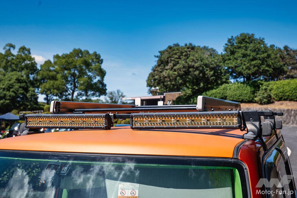 免許を取得して最初に買ったクルマで、当然ながらこれが自身初めてのカスタムだというMk-tanさん。そんな彼がフル自作で挑んだのが「bBはみんなサゲるんで、アゲてみたらオモシロイかも」と思い立った衝撃のアゲbB。スプリング変更にスペーサー、大径タイヤで実現したその高さはなんと純正比で約15㎝アップ。車種不明感とクロスオーバー感を盛り上げるため、フロントのフェイスガードやグリルマーカー、ルーフラックなどを自作でプラスしているのも好感だ。外装が華やかなオレンジなのに対し、内装がグリーン系というギャップも独創的。その姿、まるで海外のbBだ。