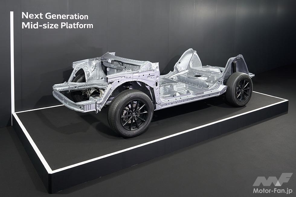 - 車体構造の見直しと新たな設計手法の採用により、ハイブリッド車向けプラットフォームの重量を現行モデル比で約90kg軽量化。走りの楽しさと燃費性能の両立を実現。