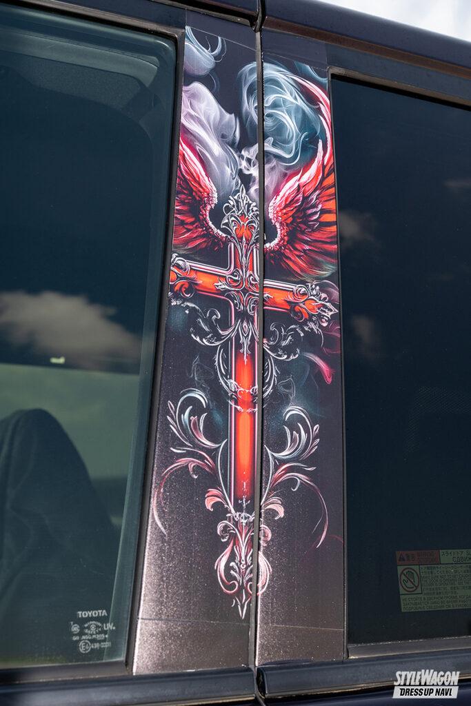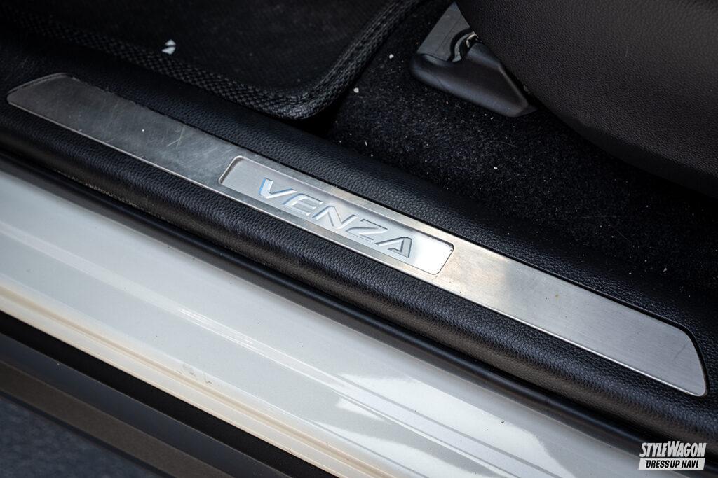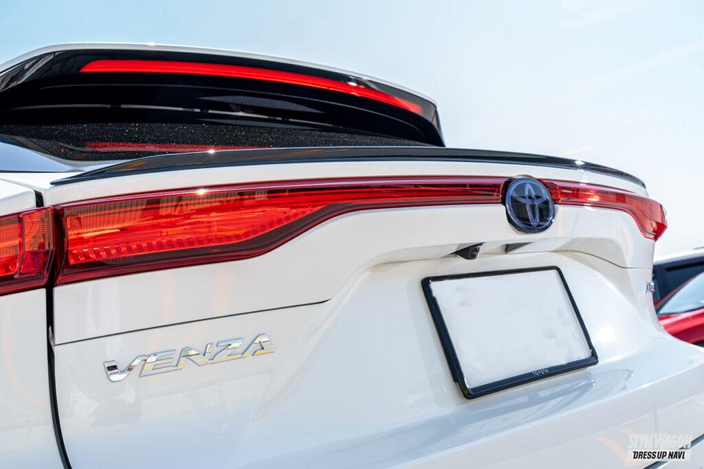 一見すると落ち着いたカスタム。かと思いきや、全身くまなく手を入れハリアーをVENZA(ハリアーの北米での名称)仕様へと変更したtempestさん。例えばヘッドライトのサイドマーカーは加工し、テールレンズはUS仕様を移植。ドアノブもブラックアウトし、雰囲気を高める。なお、足まわりにはタナベのUPサスを入れ、アゲスタイルを作り出した。ノーズブラや網目模様のリアウインドウなど、小技も効かせてより本格派に。