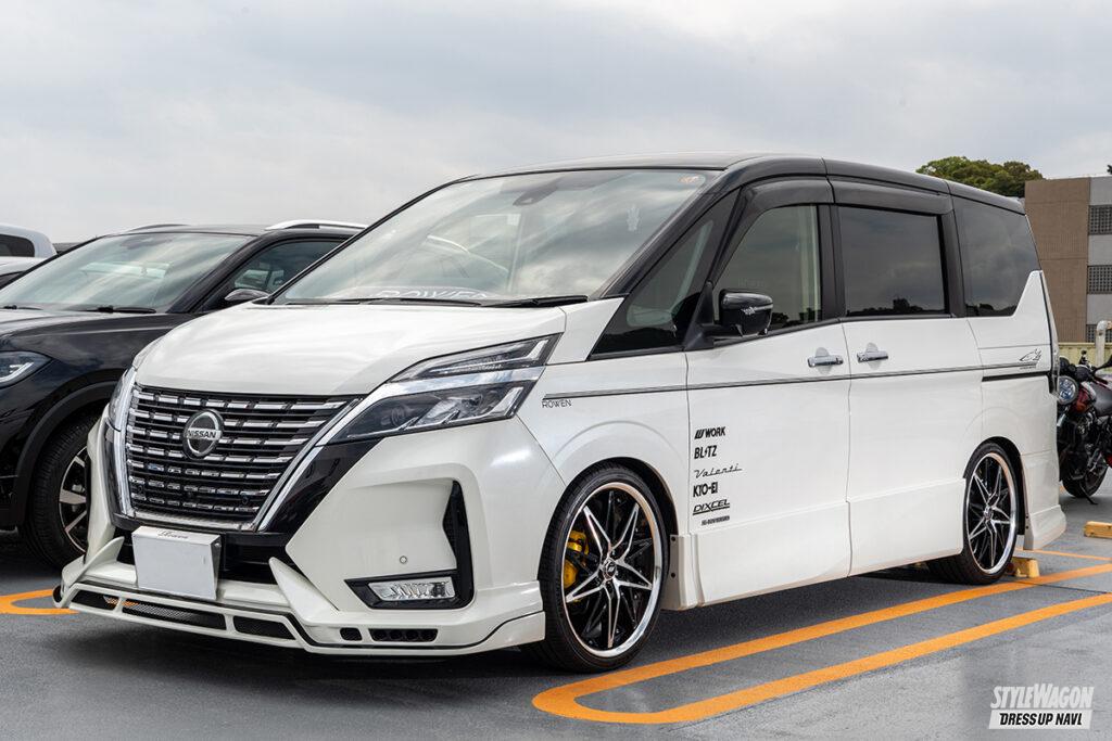 ロェンのエアロで全身を固めたマナまなさんのセレナ。アグレッシブなデザインのエアロだけに、街中でも抜群のインパクト。そこにピンストライプを合わせてオリジナル感をアップ。なお、エンブレムはマジョーラ仕様です。