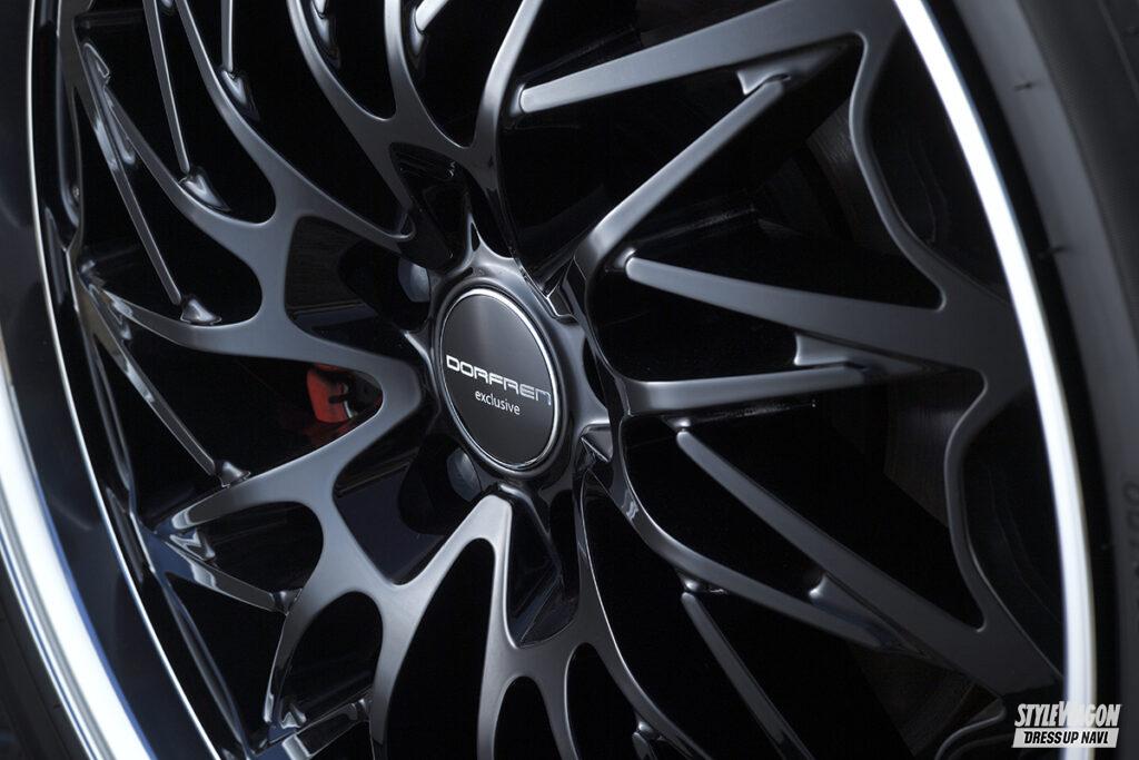 TLM02が属するドルフレン エクスクルーシブは、トピーのフラッグシップ「ドルフレン」のさらに上を行くプレミアムなシリーズ。レクサス車やトヨタの上級車など、ターゲットを絞っているのが特徴で、このTLM02は、クラウンもターゲットにあたる。デザインは、躍動感溢れるメッシュの造形に加え、リムを強調する設計となっている点がポイント。リムの奥行きを最大限キープし、さらにリム部には塗分けやダミーピアスを加えることで、1ピース構造ながらマルチピースを彷彿させる設計を採用。上級車に相応しい要素を存分に取り入れることで、クラウンの風格に劣らない上品な足元を演出してくれる。