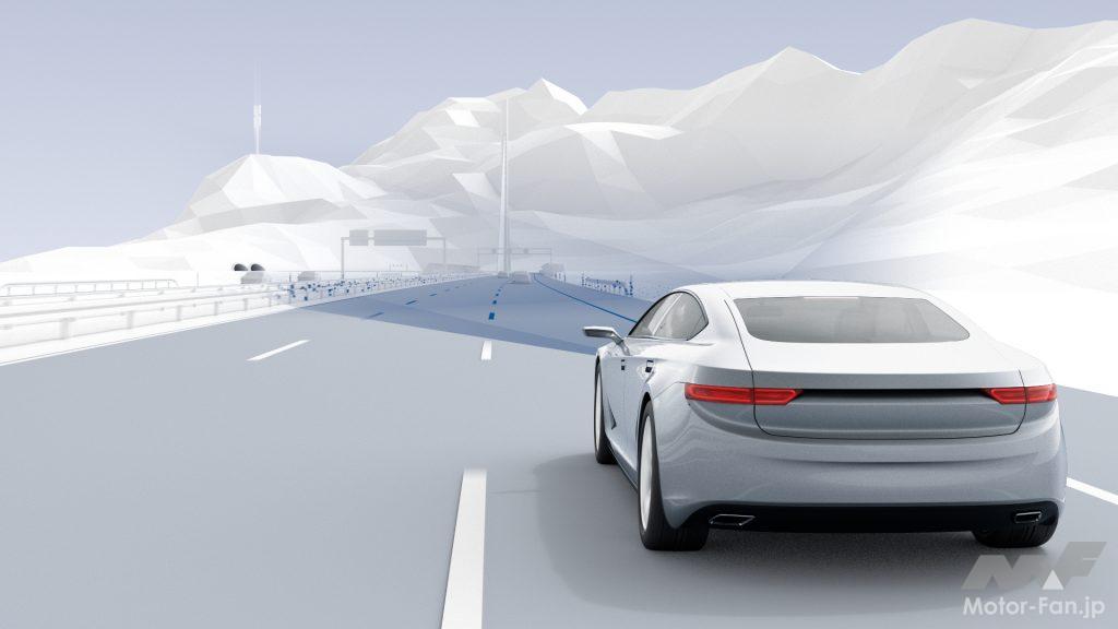ボッシュのロードシグネチャーでは、高精度で車両位置を推定することが可能になる。各車両は、サラウンドセンサーから提供される情報と、デジタルツインの情報とを、リアルタイムで比較する。この比較により、高精度マップに関連づけながら、数十センチメートルほどの精度で正確に車線内の車両の位置を推定できるようになる。カメラでは、霧、雨、雪などの悪天候時には周囲を認識することが不可能でなくとも困難になるが、レーダーを使用することで、こうした条件下でも確実な位置推定が可能。