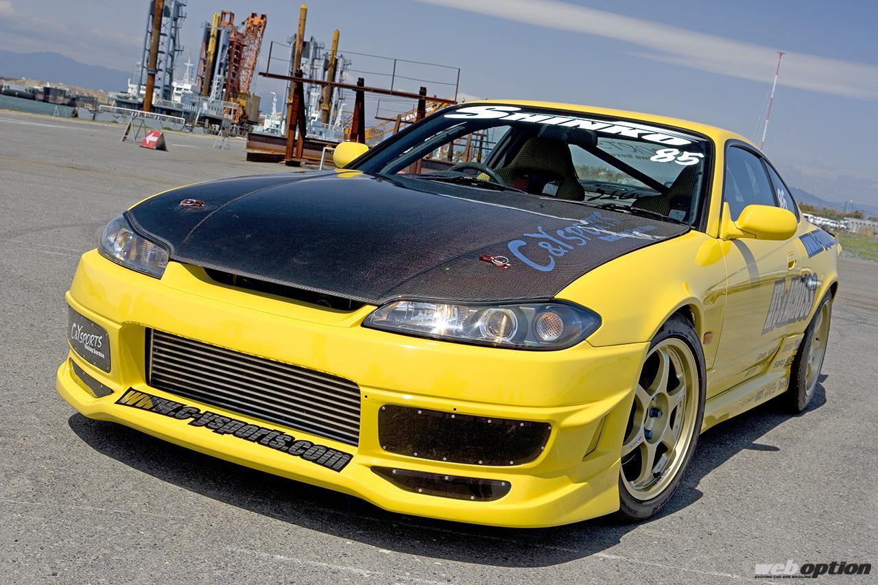 今回ピックアップするのは、そんな同社がかつてデモカーとして製作したS15シルビア。NA・AT・不人気色という格安ベース車に、ゼロヨンイベントでクラッシュしてしまった旧デモカー(AE85に2JZを換装したドラッグスペシャル)のパワートレインを移植した魔改造チューンドだ。