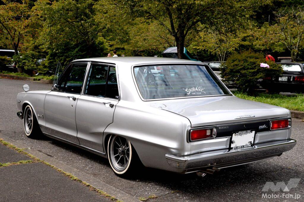 8月21日に東京・奥多摩湖畔にある大麦代園駐車場で開催された東京旧車会は朝方の雨で参加台数が少なかったものの、時間の経過とともに天気が回復するとチラホラ古いクルマの姿が見受けられるようになった。そのうちの1台がこのハコスカ。車高が低くなっているものの、比較的ノーマルな外観を維持している。実はこれ、ハコスカにあっては珍しい。というのも、多くの場合GTをGT-R仕様にするためリヤスタイルの要であるサーフィンラインをカットしてオーバーフェンダーが装着されてしまうから。ところがこのスカイラインはフェンダーラインをしっかり残してあり、GT-R仕様にされていないことに好感が持てた。GT-R仕様にするため純正のブルーガラスを白ガラスにしてしまうことも多いが、やはりこのスカイラインはブルーのまま。そこでそばにいたオーナーに話を聞いてみることにした。