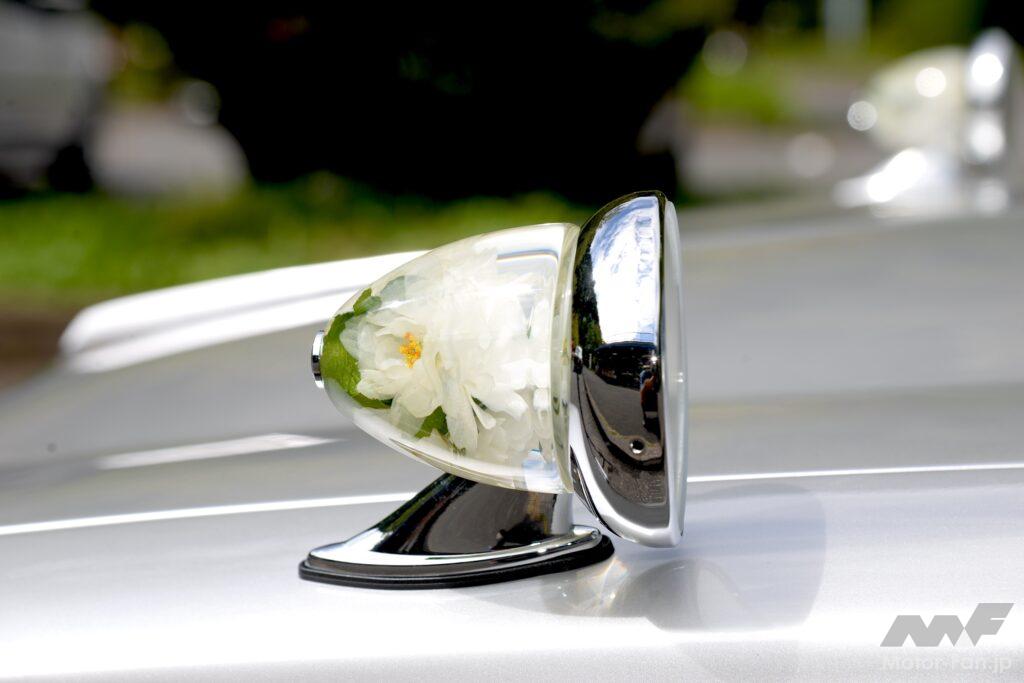 フェンダーミラーを見てオヤッ?と思われただろう。砲弾型になった部分が水中花になっているのだ。これは80年代前後に流行したパーツで現存しているものは非常に少ない。シフトノブのように今でも販売されていれば珍しくないのだが、ミラーはすでに絶版だから当時のものを探すしかないのだ。このミラーは知り合いを通して海外に渡った当時モノのパーツを手に入れることができた品だそう。またワンテールと呼ばれ、ウインカーとストップランプが兼用とされている中期モデルのテールランプに入れ替えたのは三ツ森さんのこだわりだが、その横に本来なら立体エンブレムがあるはず。盗難防止なのだろうか、筆書きにされているのが面白い。