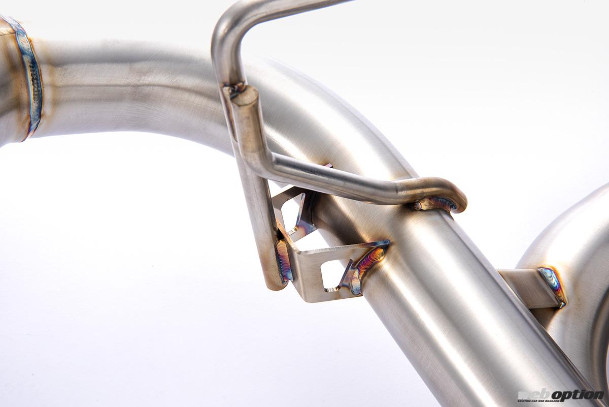 このマフラーはHKSエキゾーストシステムの集大成とも言える逸品で、軽量性は「ハイパワースペックL」、パワーと静音の両立は「スーパーターボマフラー」、パイピングレイアウトは「SSM」と、各シリーズの技術を取り込みながら設計されているのだ。
