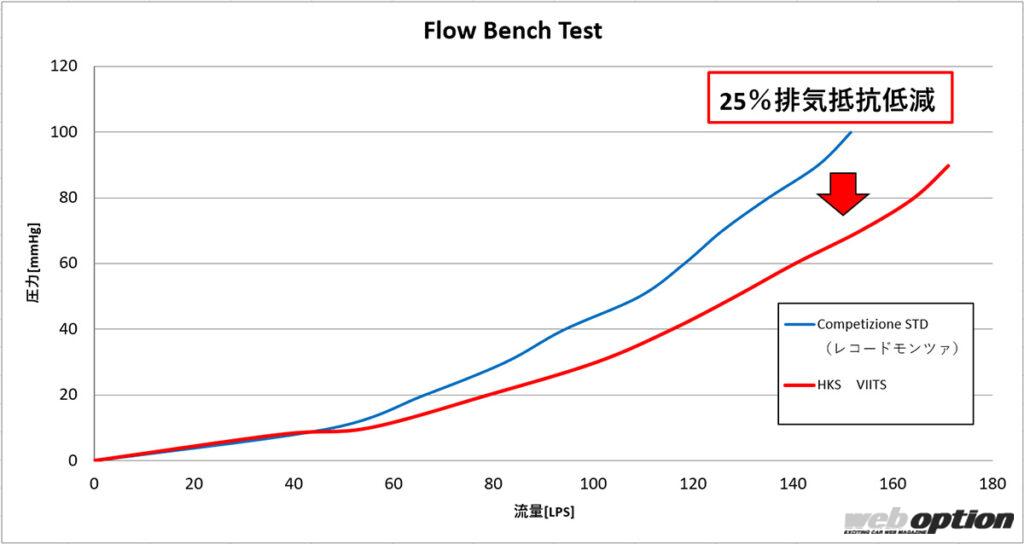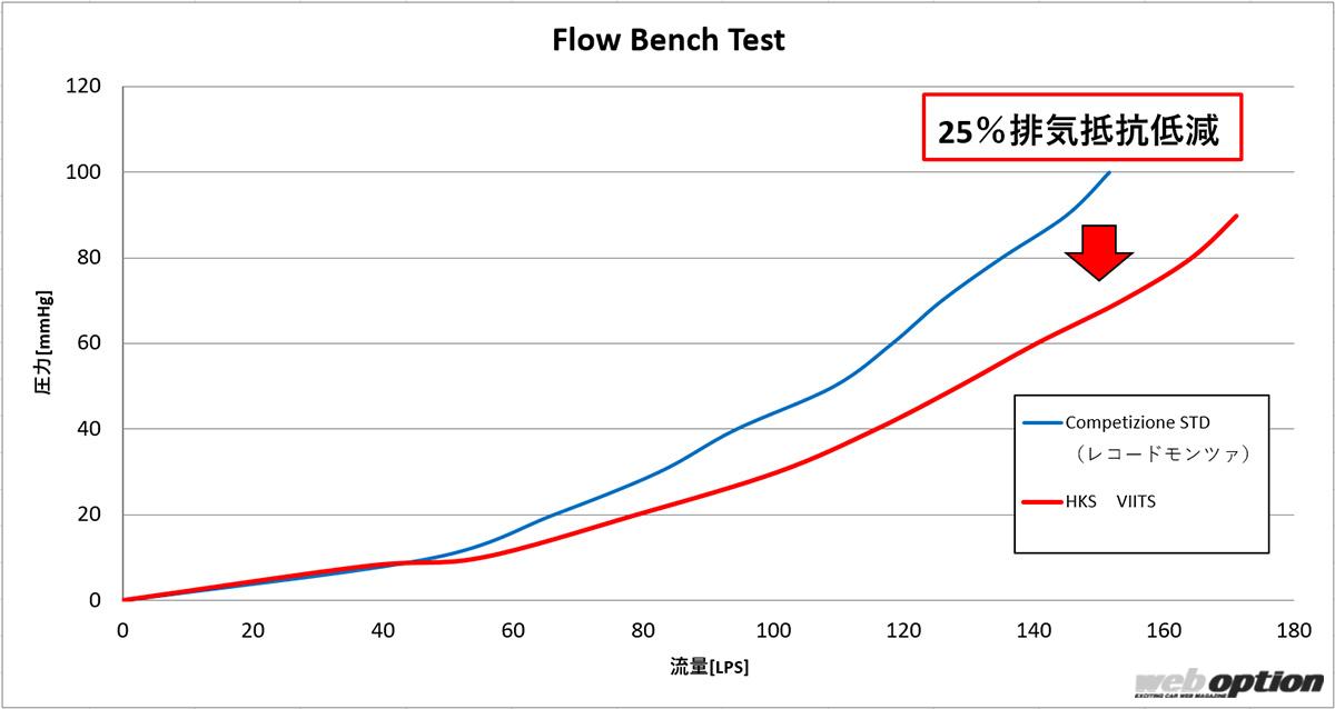 絞りの無いストレート構造ながら車検対応スペックを実現しているのは、スーパーターボマフラーで培った技術によるもの。最大で25%という排気効率低減は、走りのレスポンス向上に大きく貢献する。