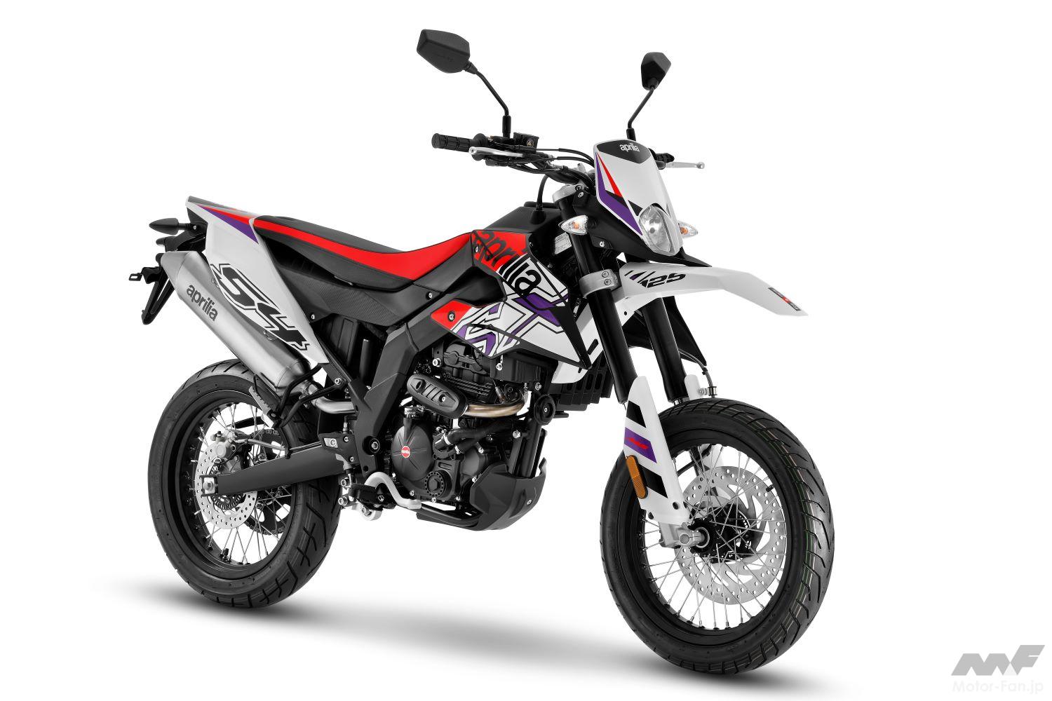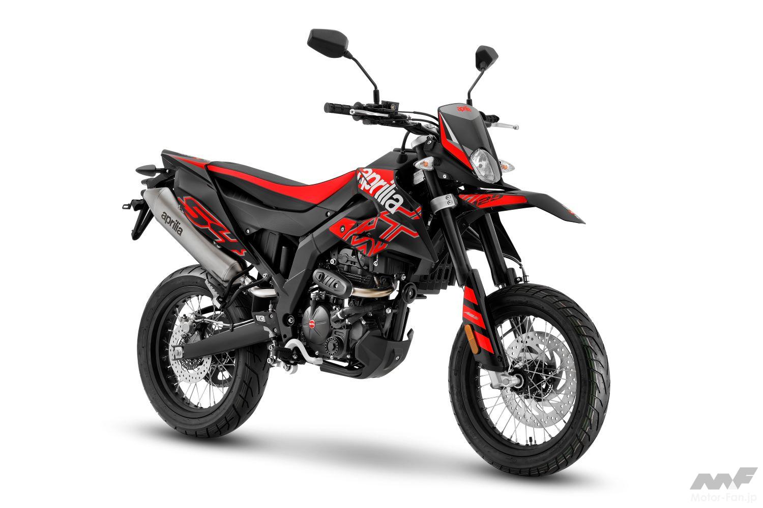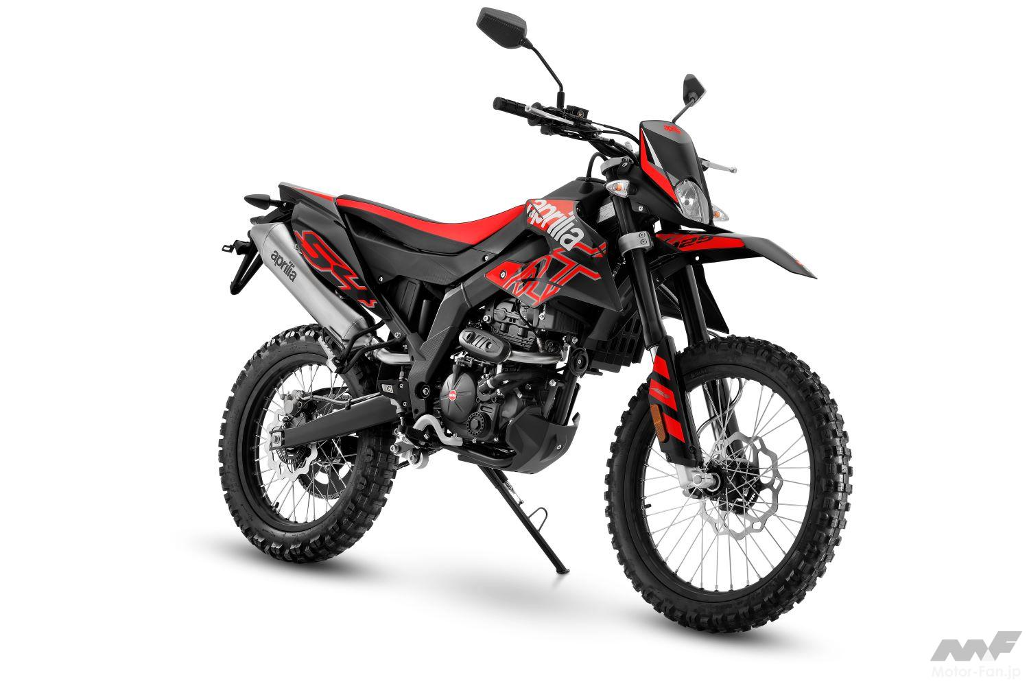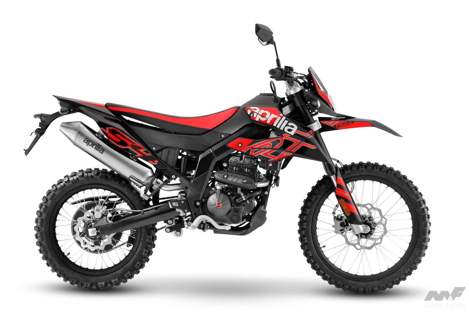 新たに追加した“ブラックスパイダー”のグラフィックは、これまでのブラック基調を踏襲し、レッドのアクセントを強調したアプリリアらしいデザインで、クラスを超えたデザイン性と装備や、パワフルなエンジンによる軽快な走りを提供する当モデルは、アグレッシブで本物志向なライダーに捧げるこのフルサイズオフローダー及びモタードに仕上げられている。