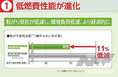 ※1 タイヤサイズ195/65R15、ブリヂストン従来品「ECOPIA NH100」比。
