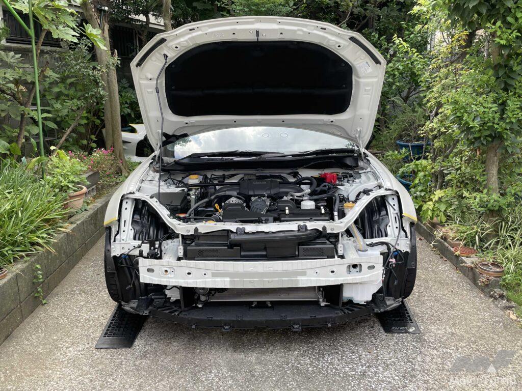 ちなみにGR86のヘッドライトを外すには、もちろんフロントバンパーを外す必要がある。
