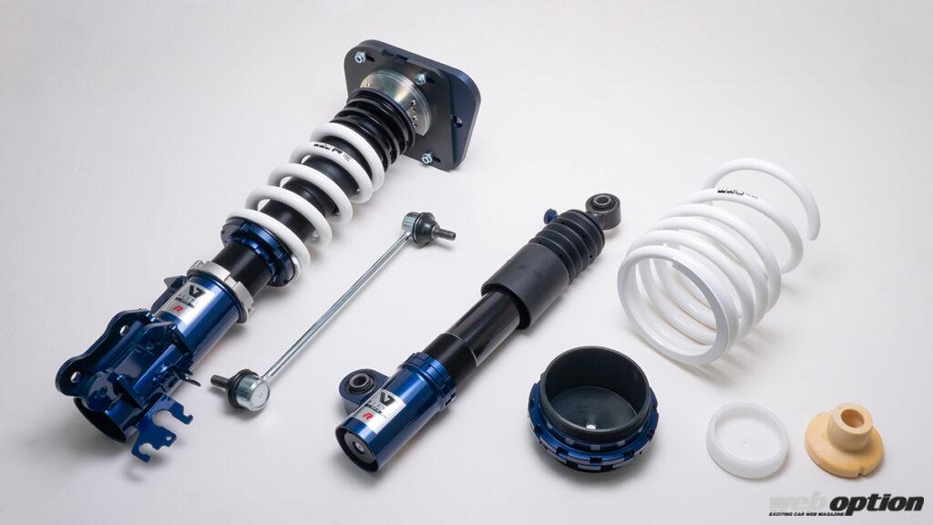 スプリングレートはフロントが16kg/mm、リヤが9.5kg/mm。車高調整幅はフロントがプラス5mm〜マイナス55mm、リヤがマイナス15mm〜マイナス45mmとなる。減衰力は30段調整式だ。