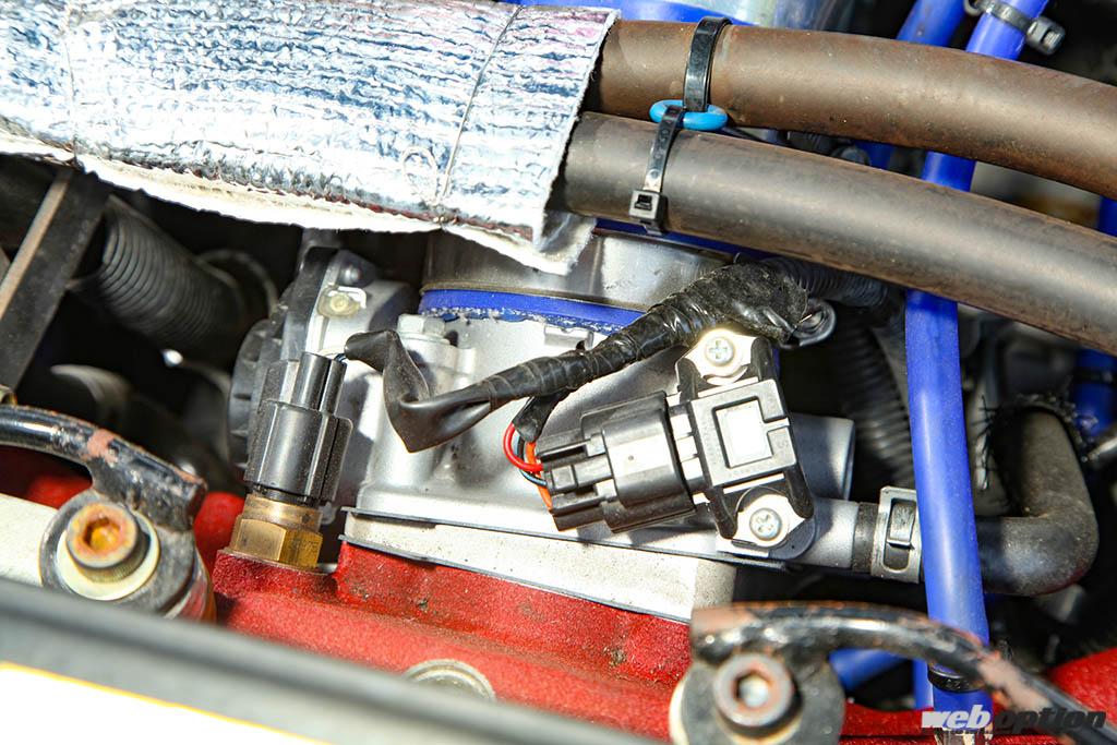 インテークでは、微妙にスロットルの取り付け角度を変えているのもポイント。これは、サクションパイプの角度変更によって高回転時に1番シリンダーへの空気流入量が多くなってしまうことへの対策で、均等に吸気が行える角度を探した結果だという。合わせて、F-CON Vプロによる気筒間補正も活用してセットアップがなされている。