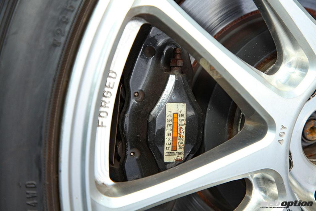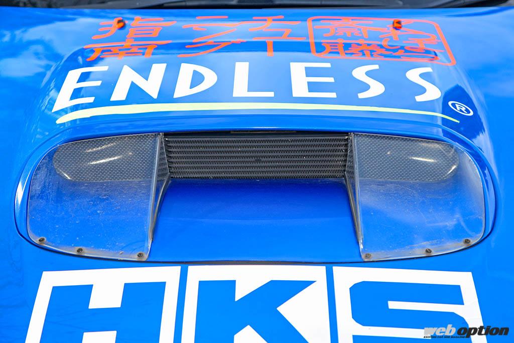 向上したエンジン出力に合わせてブレーキも強化。フロントブレーキはエンドレス製で、冷却効率を上げるため、ローターはオフセットを変更するなど独自のセットアップが施されている。