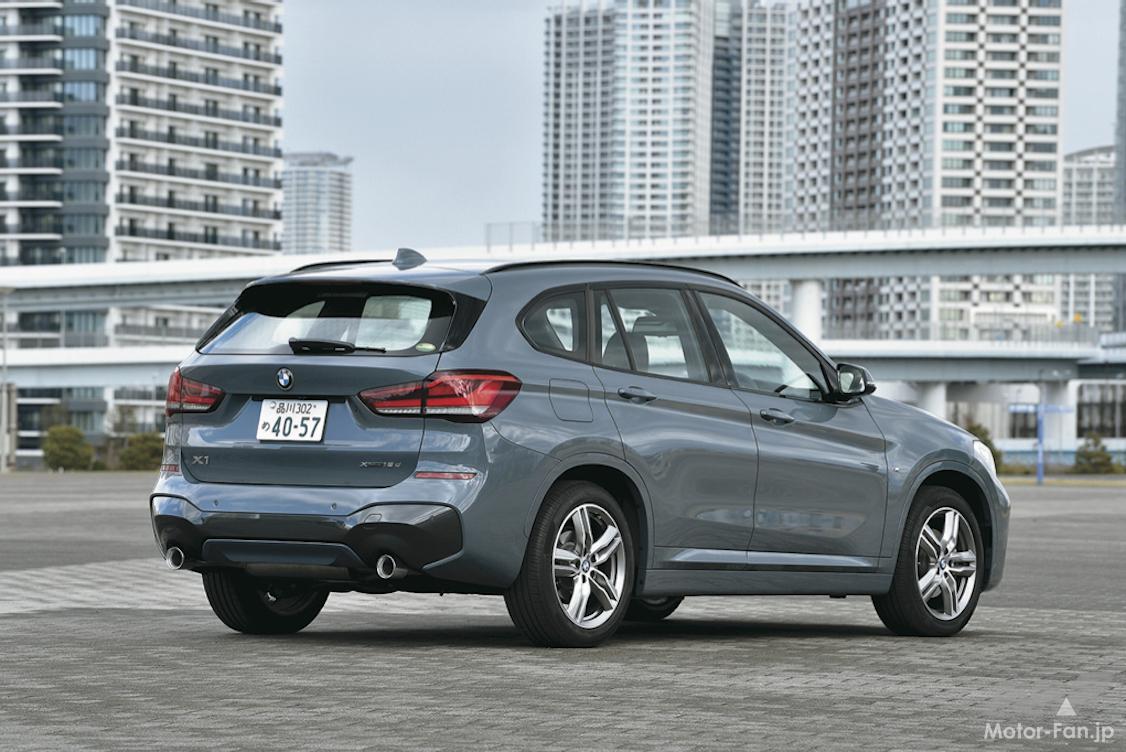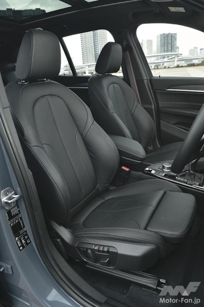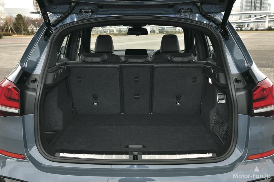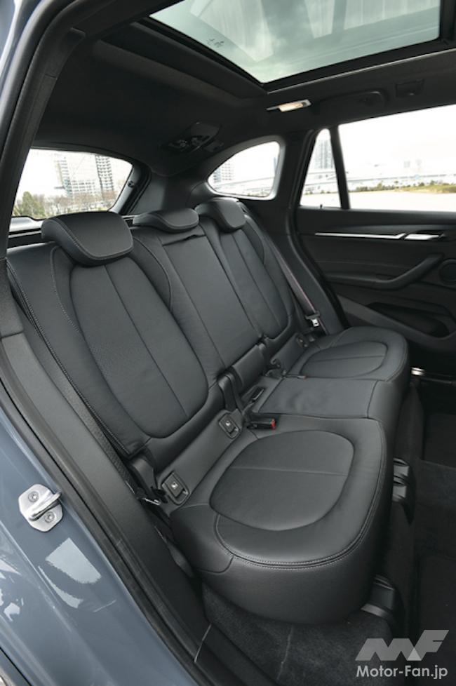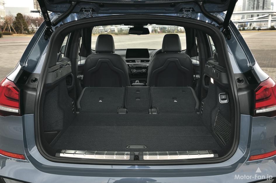 先代X1は後輪駆動だったが、現行型は前輪駆動に変更された。そのために車内は開放感を増している。前後席ともに広々していて、特に後席の頭上と足元の広さは、上級のX3に匹敵する。リヤゲートの角度を立てたこともあり、荷室容量にも余裕を得ている。実用的には、2シリーズ・アクティブツアラーのSUV版という印象も受ける。