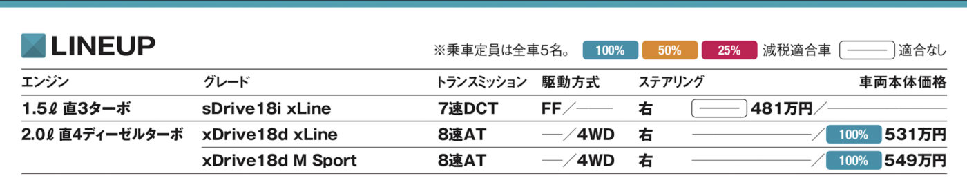 月間登録台数 NO DATA 現行型発表 15年10月(一部仕様変更 21年4月) WLTCモード燃費 15.3 km/l ※「xDrive18d」系