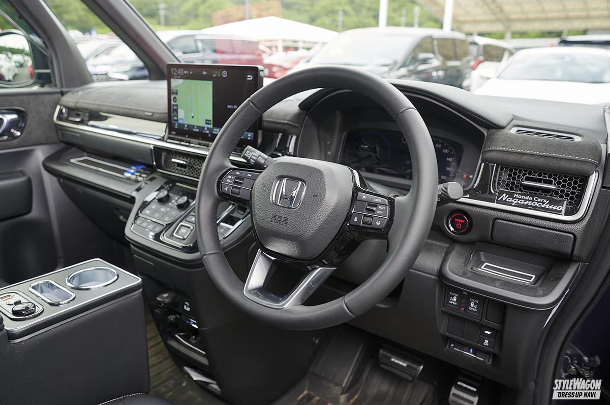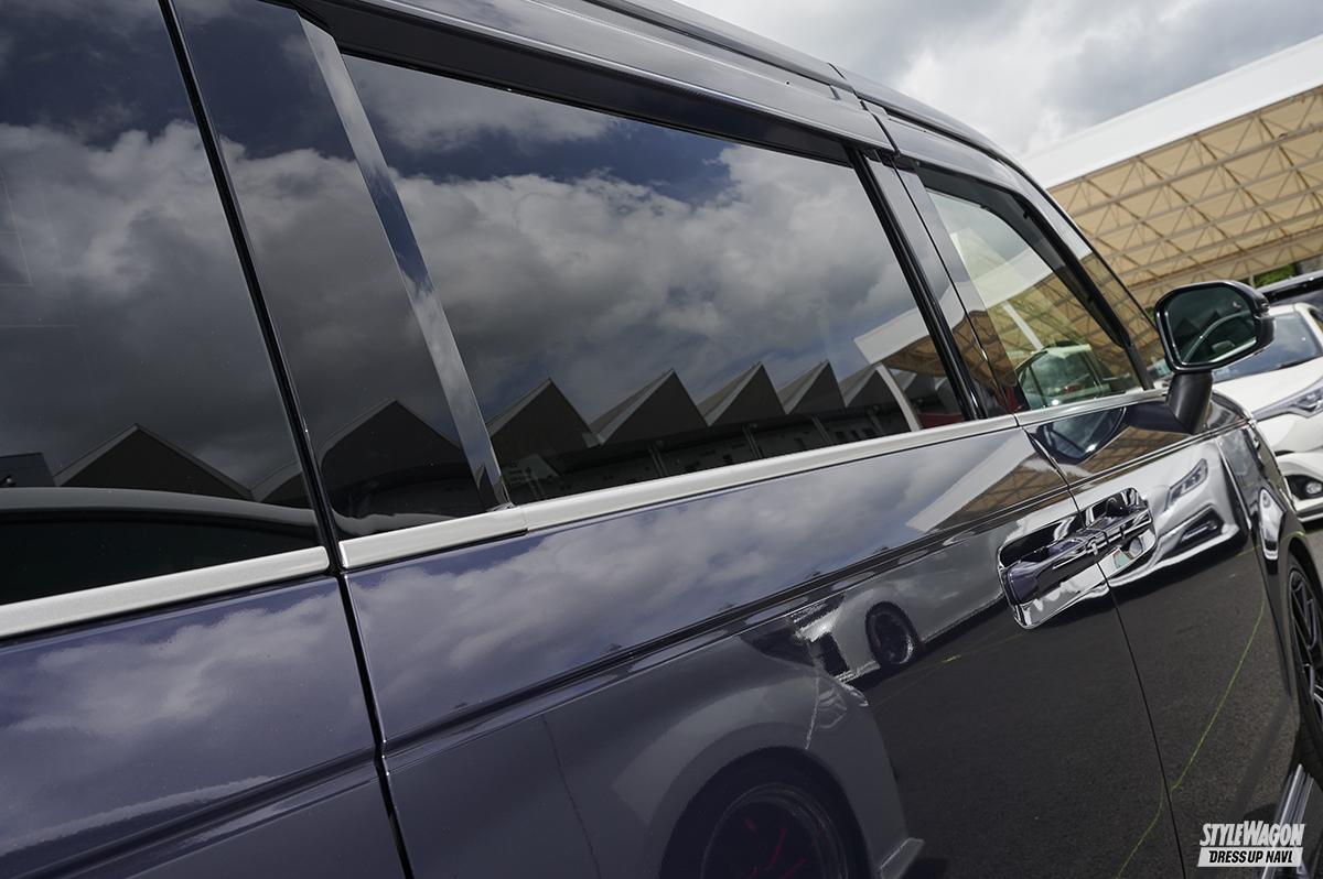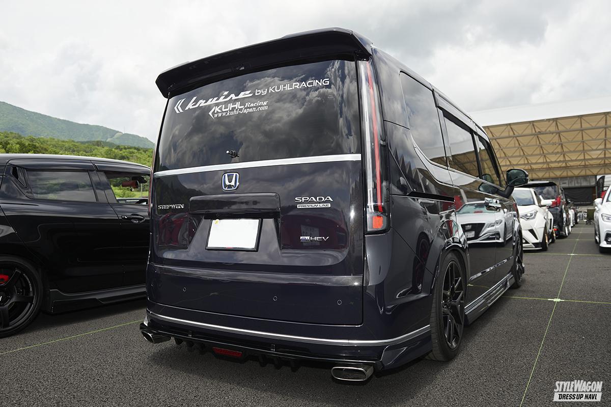 S-MX、RKステップワゴンと乗り継いで、新型ステップワゴンに乗り替えた篠原さん。縦型テールランプがお気に入りで「この方がステップワゴンらしい!」と話す。最初、とりあえずディーラーに見に行き、つい流れで……。ユニークなのは、その時にシビック用ホイールへの換装を併せてオーダーしたこと。このホイールの違いに気が付いた人は“根っからのホンダ好き”を認定します。窓のモールを社外品に換えるなど、細部を丁寧に仕上げているのもポイントだ。