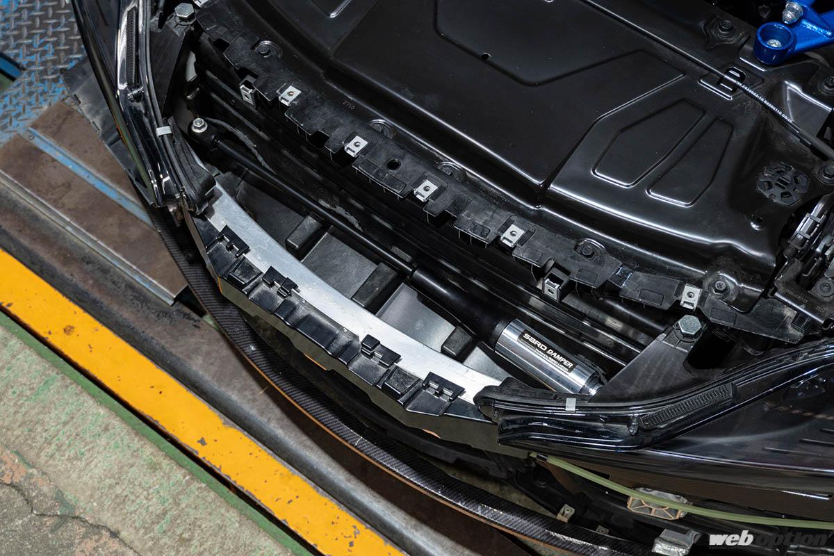 この製品は、リジッドに近い超高減衰の摩擦式ダンパーだ。ボディ前後のリーンフォースメント付近に装着することで、ボディのよじれを抑えた剛性感のある走りと、路面から生じる振動を抑えたシャープかつしなやかなハンドリングの両方を実現する。