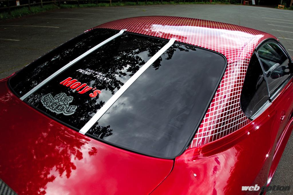 ちなみに、カラーリングに関しては知人のカスタムペイントショップにお任せして仕上げてもらったものだというが、ルーフのダイアモンドクロス柄はもちろん、キャンディを中心にボディのレッド系は濃淡のある3色で塗り分け、ダクト周辺にはアクセントとしてシャドウが入れられるなど相当手が込んでいる。
