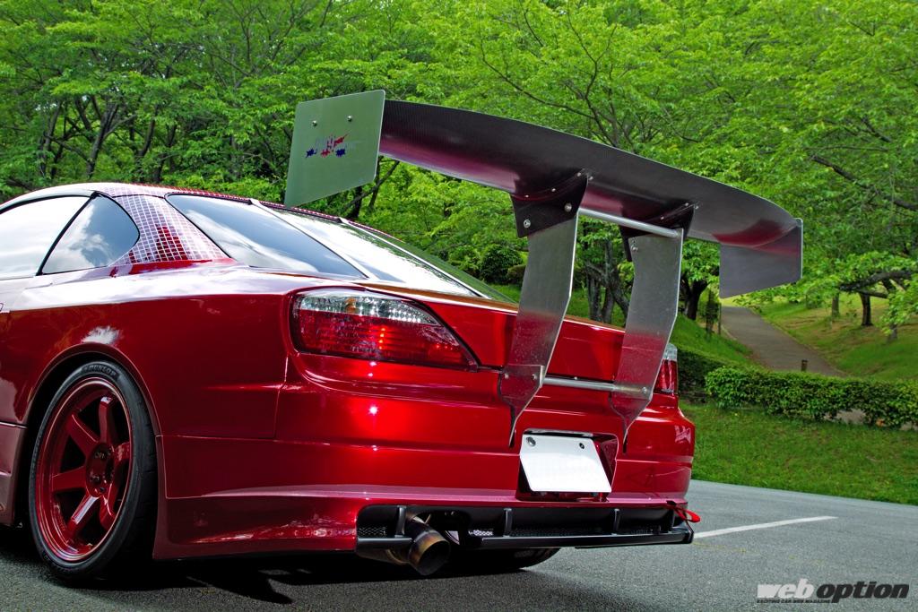 外観はヴェルテックスのエッジフルキットでワイドボディ化。これはもちろん幅広のタイヤを投入するための選択だ。また、ルーフはFRP製、ウインドウはアクリル製に変更するなど軽量化を進め、車重は約1050kgというからナンバー付きのシルビアとしては究極に近い。