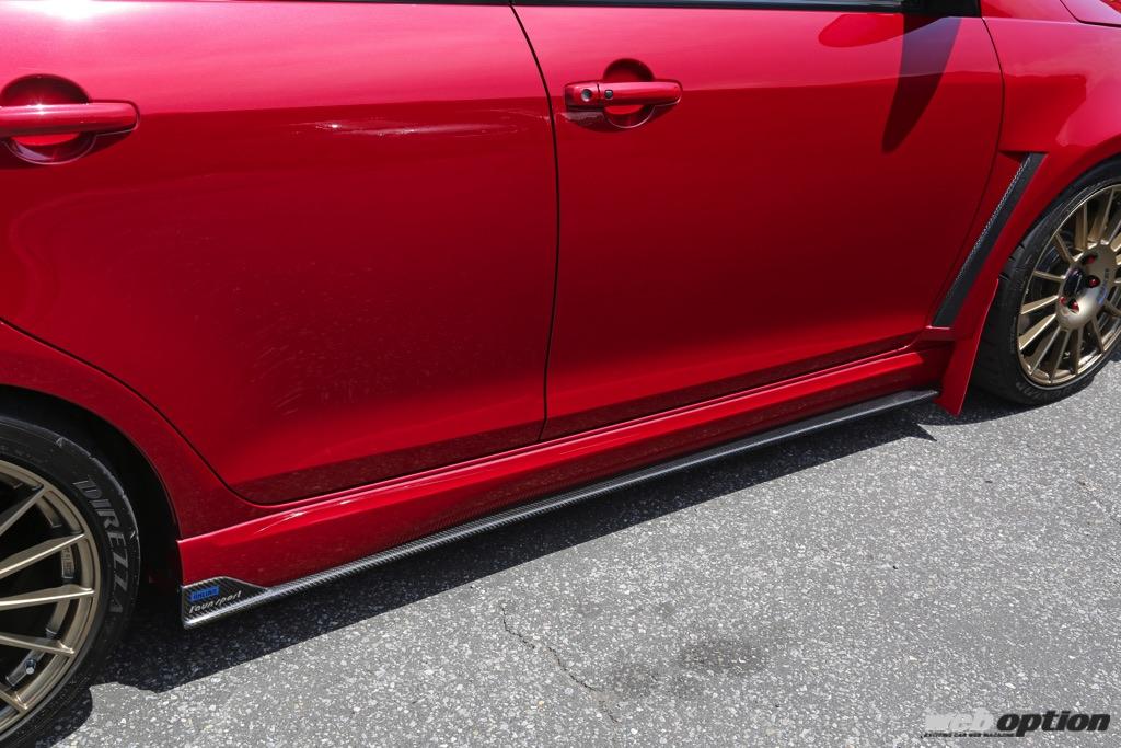 クルマの一体感を高めるのに効果的なサイドスポイラータイプ2(4万1800円)は、レーシーなムードを演出できるカーボン仕上げ。純正サイドステップに追加するタイプで、ボディサイドのアクセントにも効果的だ。左右セットとなっている。