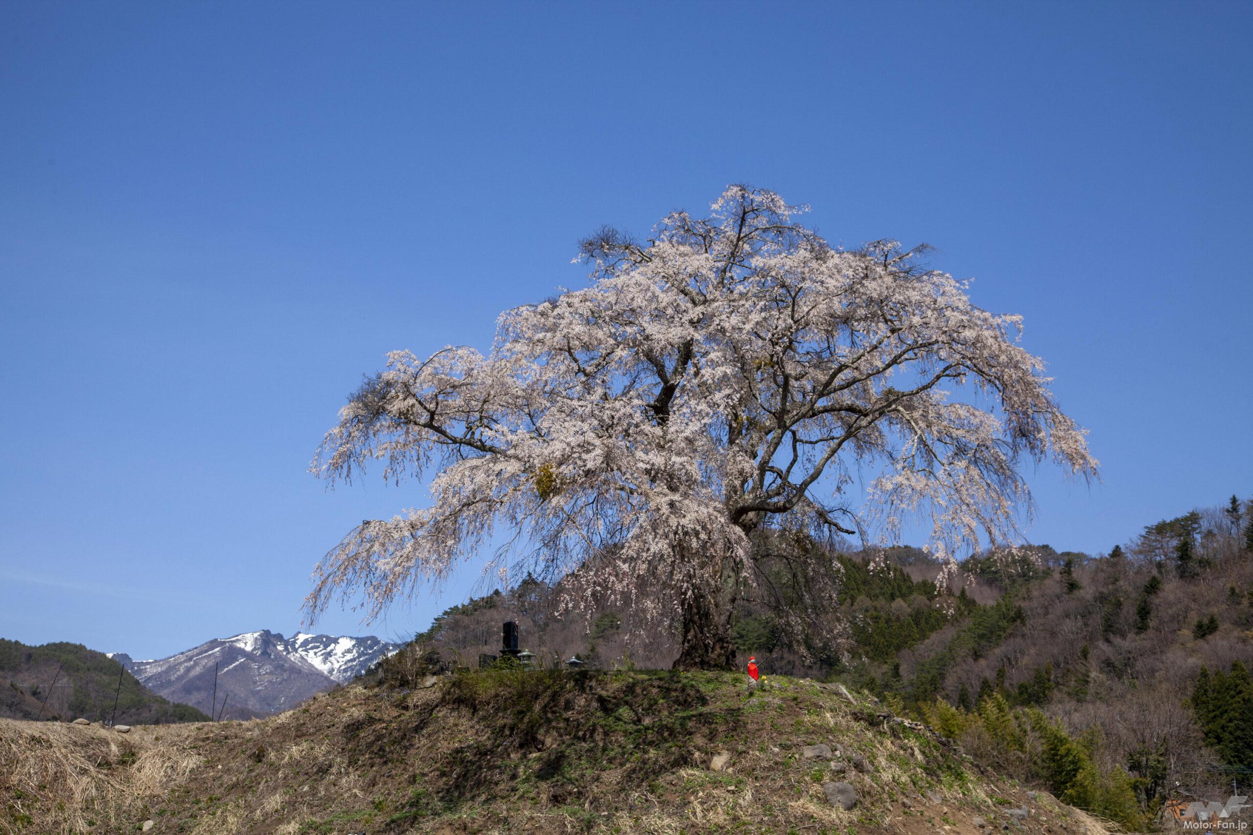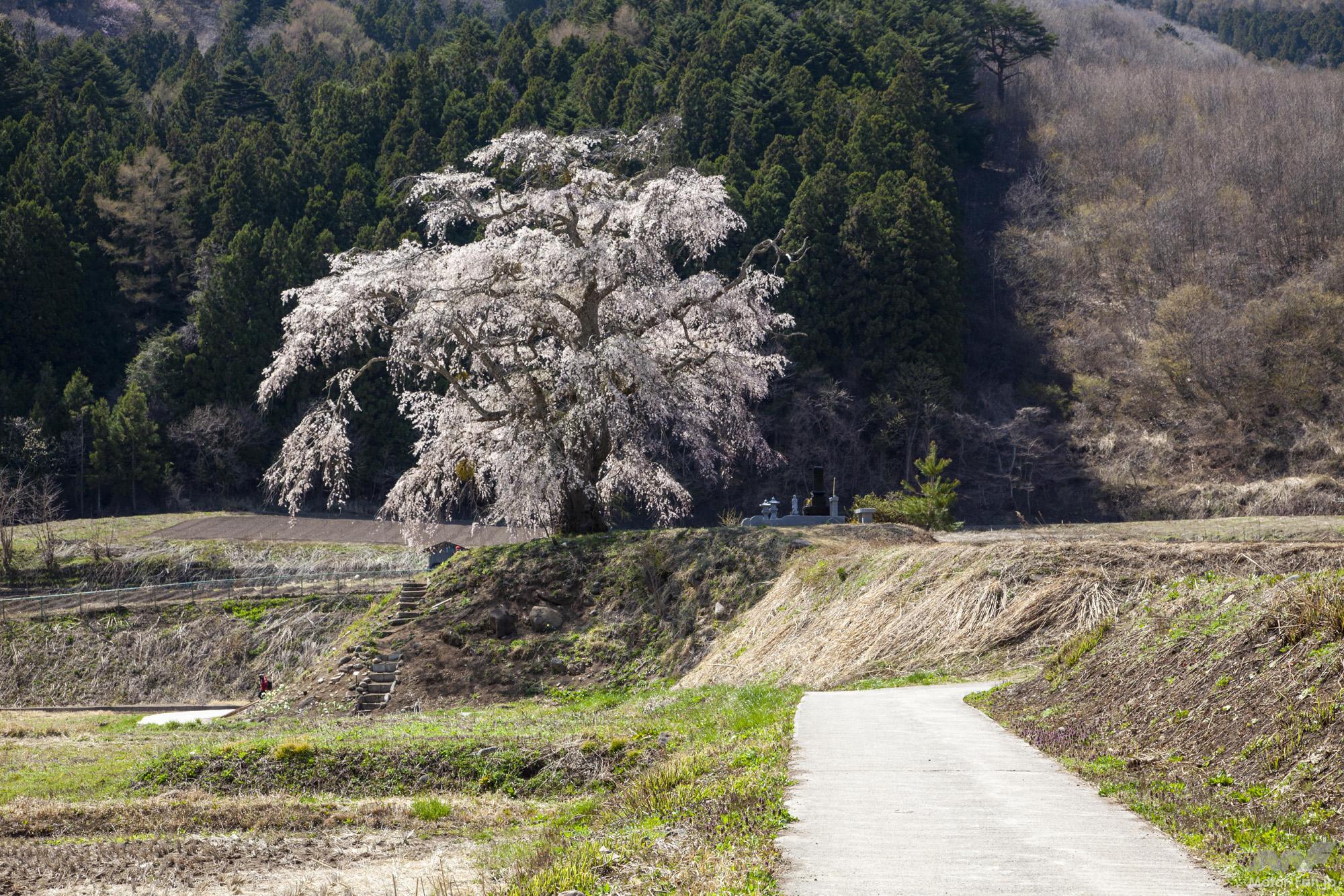 角度によって姿を変える1本桜。くれぐれも周囲の畑には入らぬよう、注意しましょう。