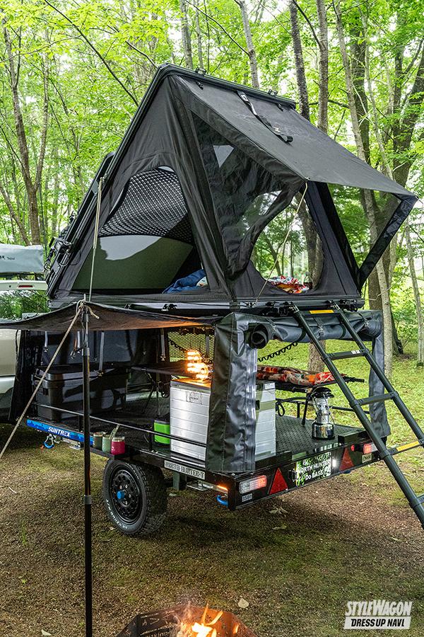 カスタムコンプリート“サバイバー”シリーズが好調のノースハンターが、満を持して市販化するのが老舗SUNTREXと共同開発した牽引トレーラー“ノースハンターT”だ。SUNTREXが長年培ってきた堅牢なトレーラーフレームに様々なオプションを組み込めるヤグラを組み合わせ、ハイエンドモデルではルーフトップテントまでも実装。ヒッチメンバーを介してクルマに連結すれば、アウトドアを心おきなく遊び尽くせるベース基地として活躍すること間違いナシ。