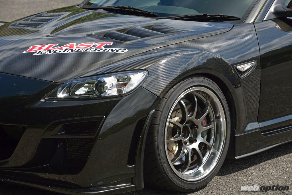 そんなブラストエンジニアリングのRX-8は、サーキット仕様として手を加えてきたもの。メインターゲットとしているのは、岡山国際サーキット。中国地方の走りのメッカとなっているテクニカルコースを攻略するために、足回りを重視したセットアップでRX-8のポテンシャルを引き出すことを目指している。
