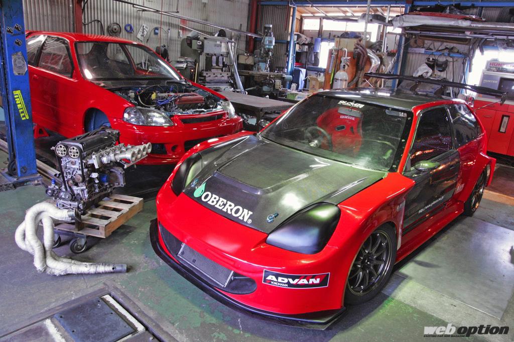 コンパクトチューンを得意とする大阪の“Gフォースレーシングファクトリー”が製作した、サーキット攻略機の登場だ。ポルシェボクスターを思い浮かべながらデザインしたというファニールック、そのベースはなんとEF9シビック!