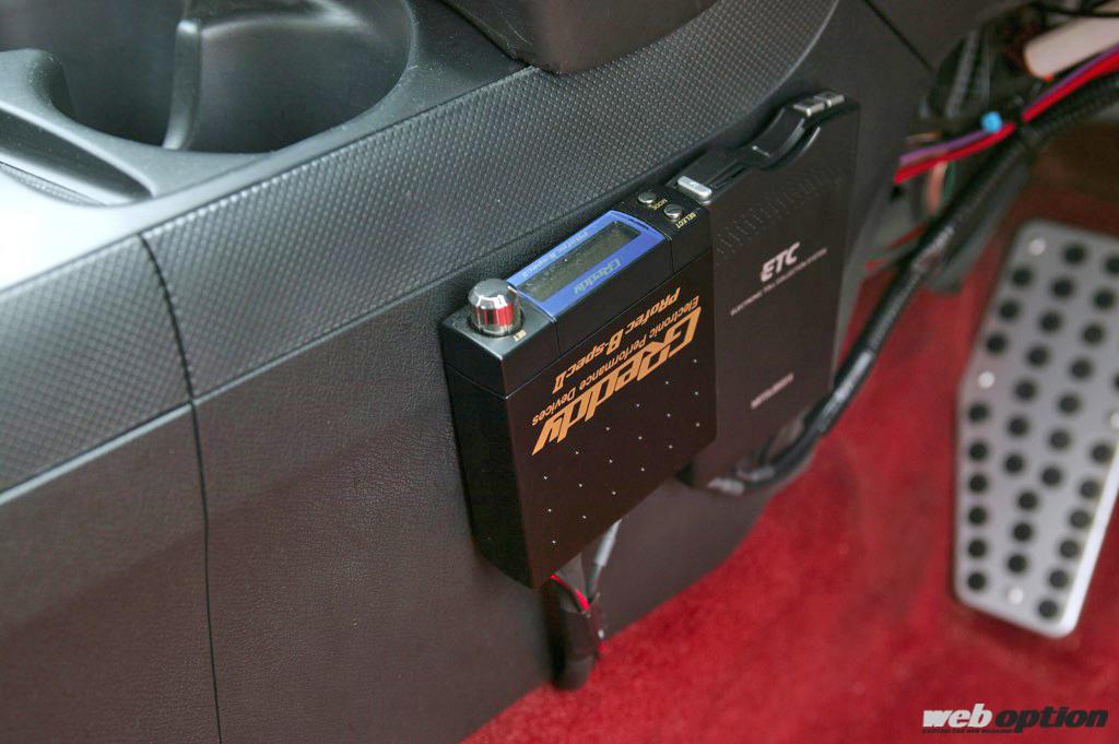 室内はノーマル然とした仕上がりだ。スマートさを求めて、追加メーターはダッシュボードに埋め込んでいる。ETCの横に設置されたブーストコントローラーと独立したブーストメーターがターボ仕様を物語る。