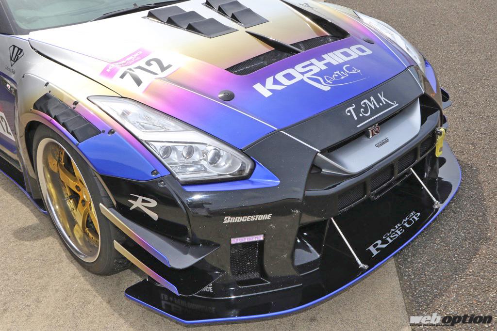 元々、ドレスアップカーとしてカスタマイズがスタートしたこのGT-Rは、リバティウォークのボディキットが装着され、純正状態とは比べものにならないほどの重厚感を醸し出す。「速さ」と「カッコ良さ」を両立した理想的な仕上がりと言える。