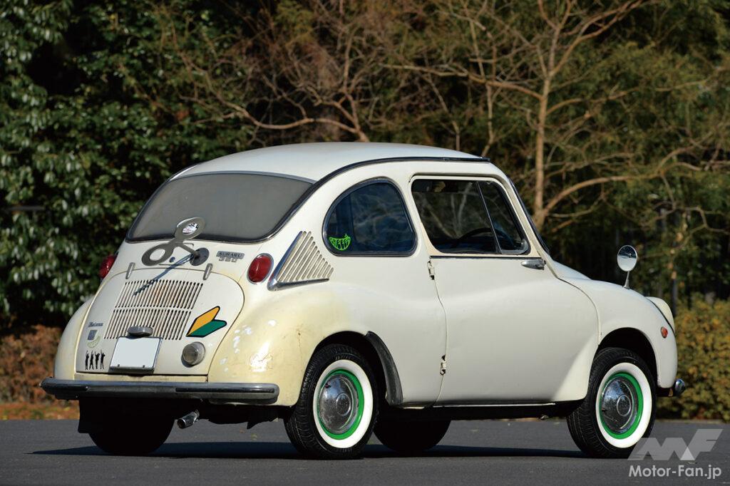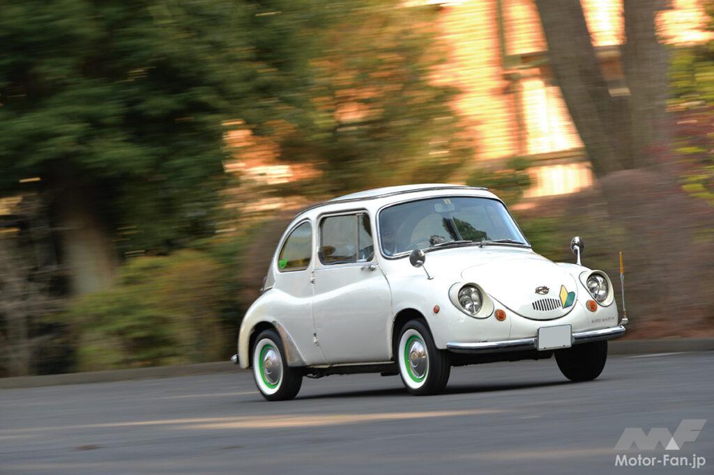 1958年に増加試作型を発売して以来、1971年に生産を終了するまで360軽自動車市場で圧倒的な存在感を示したスバル360。当初はグレードもなかったが順調な販売とともにデラックスやバンを追加。62年からは後期の顔付きがデラックスに採用された。エンジンは初期の横Hパターン車から通常パターンに変更された後は同じEK32型。最終のヤングSSではツインキャブを装備して初期16psから36psへと向上した。