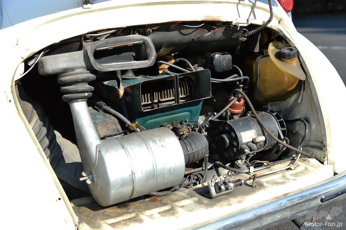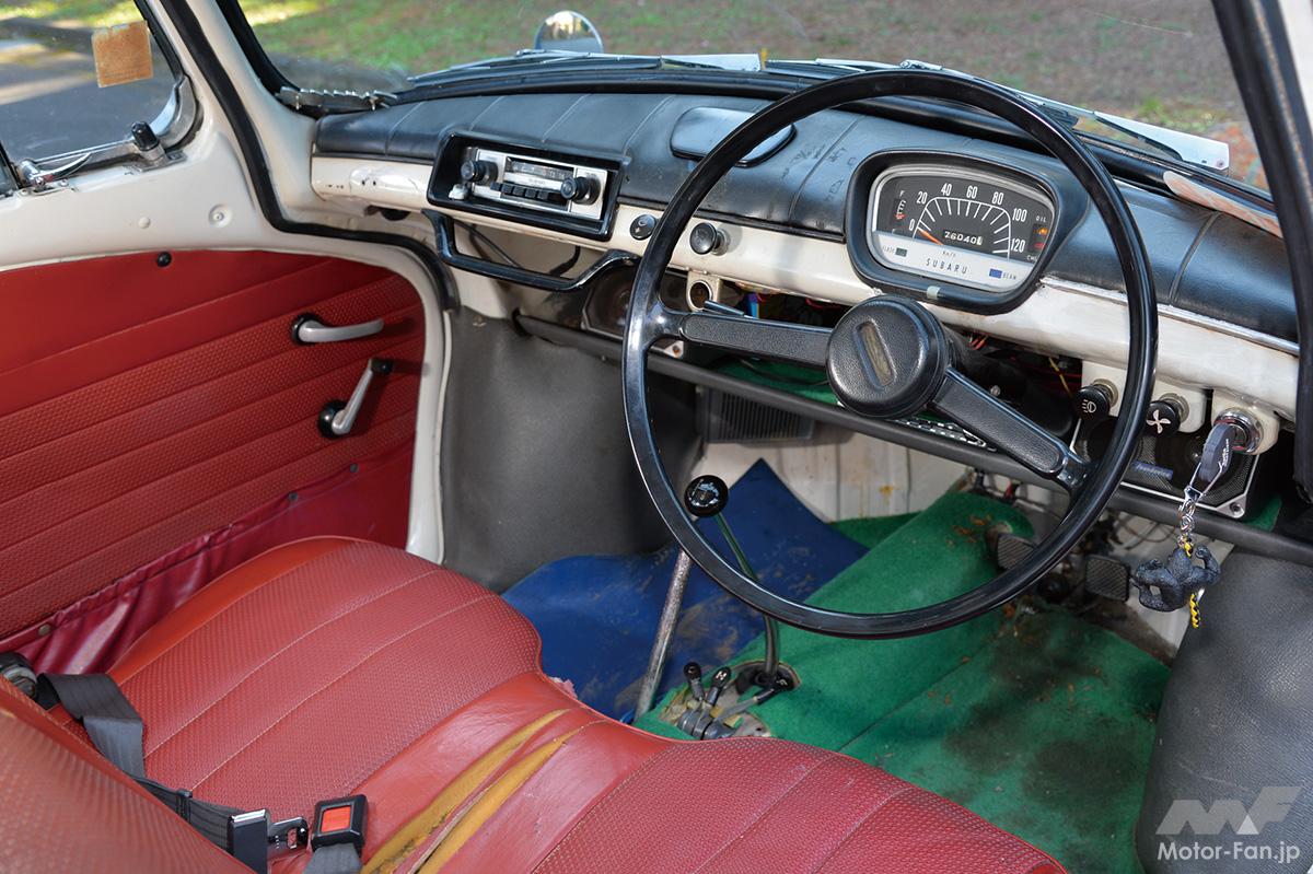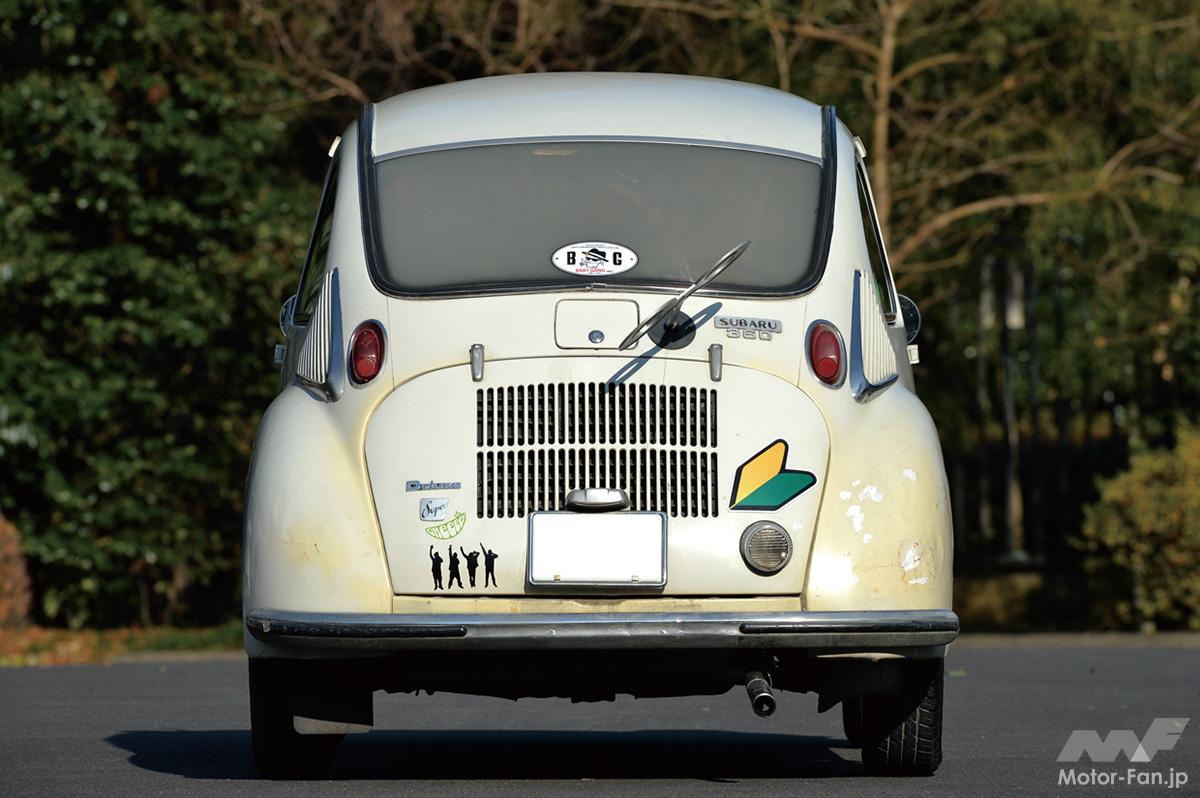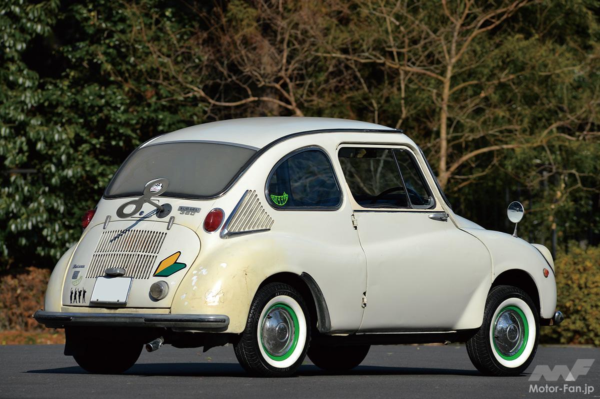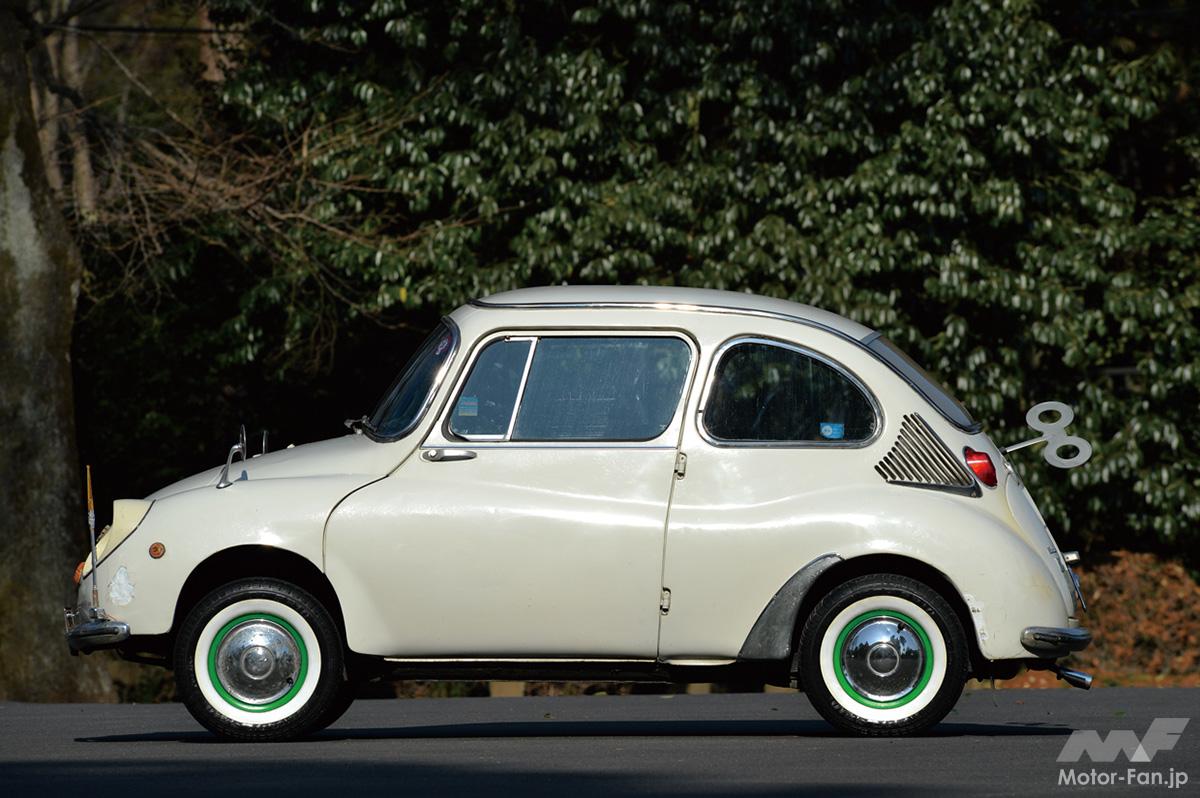 1958年に増加試作型を発売して以来、1971年に生産を終了するまで360軽自動車市場で圧倒的な存在感を示したスバル360。当初はグレードもなかったが順調な販売とともにデラックスやバンを追加。62年からは後期の顔付きがデラックスに採用された。エンジンは初期の横Hパターン車から通常パターンに変更された後は同じEK32型。最終のヤングSSではツインキャブを装備して初期16psから36psへと向上した。