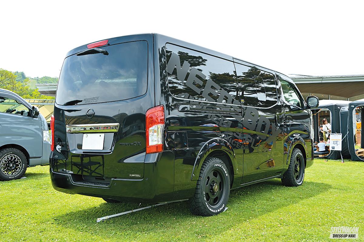 荷台に自転車を積み込んでサイクリングにでも行こうか、なんて想像力が膨らむキャラバンを提案しているのが北海道のニーズボックス。もともとバイクを運ぶトランポカスタムを得意としているだけに、荷室空間の使い方は「見事」の一言。キモとなるのは両側跳ね上げ式のフリップベッドキット。左右を分割して跳ね上げることで、のんびり寝そべることのできるベッドにも、ゆったり座れるソファにもなるうえ、移動中は満載の荷物を積むスペースも確保できる。一挙両得ならぬ、「一挙三得」のスゴ技なのだ。しかもベッドの足はテーブルにも早変わり。食事をするにも使い勝手抜群な工夫と言って良いだろう。もちろんサイクリング以外にもキャンプや車中泊など、アウトドアレジャーに大活躍するのは間違いなし。外遊びの楽しさをこれまで以上に底上げしてくれるコンプリートプランとなっている。