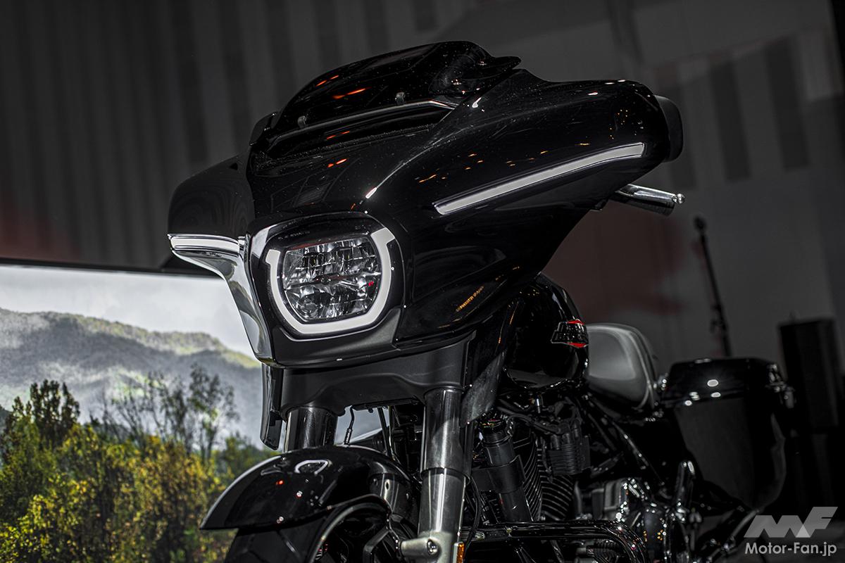 今回発表されたNEWモデルは、フロントフェンダーからサドルバッグにかけてのダイナミックな流れを組み合わせた、進化したフェアリングのプロフィールが特長。ハーレーダビッドソンのデザインDNAを継承しながらも、爽やかでモダンな印象を寄与させた。