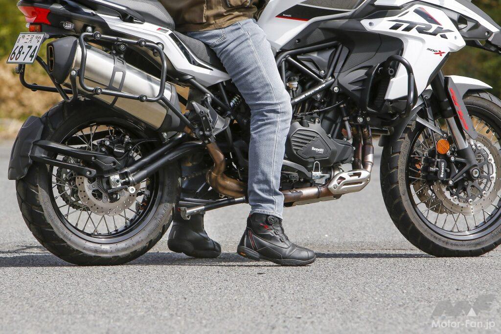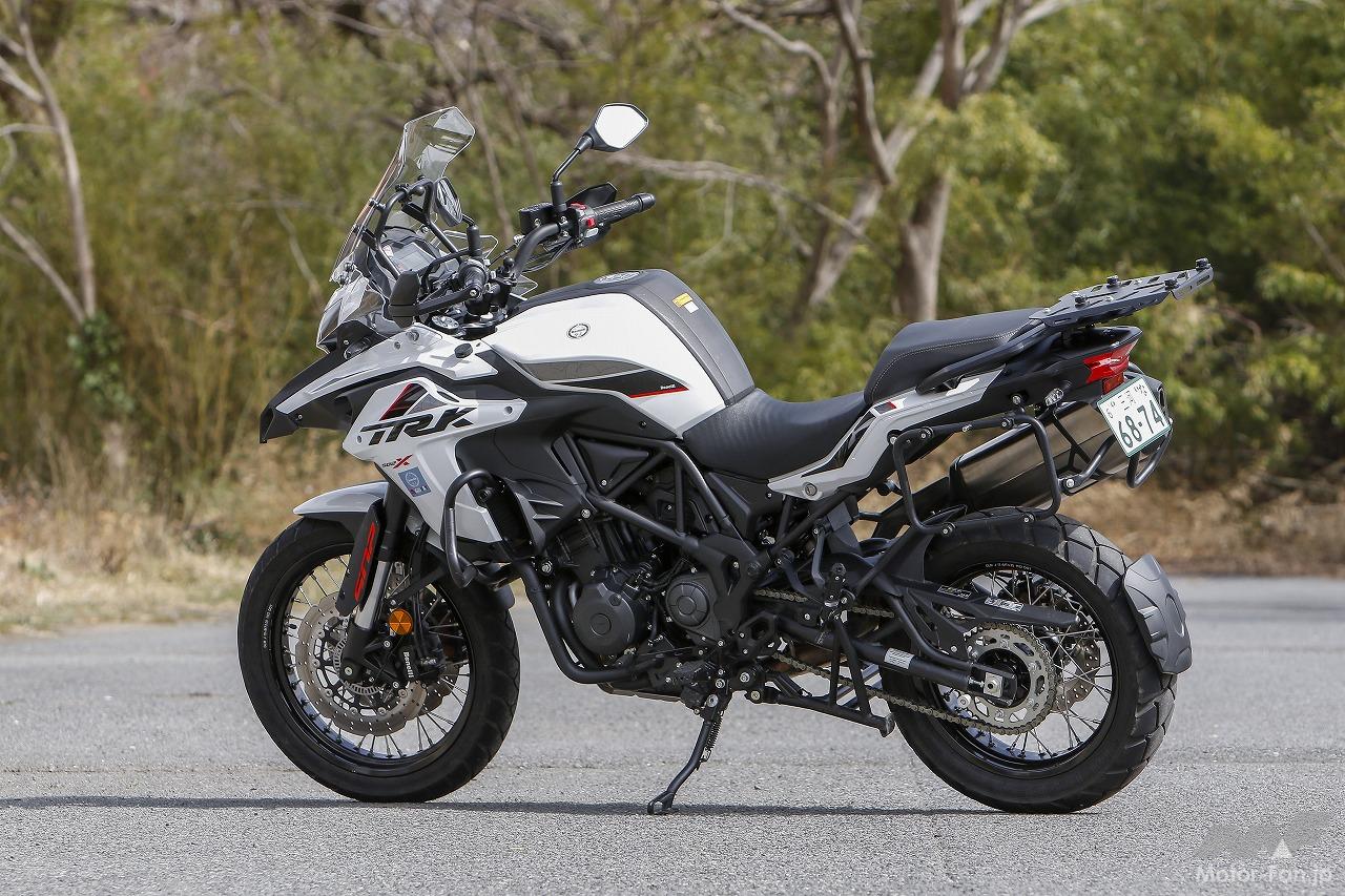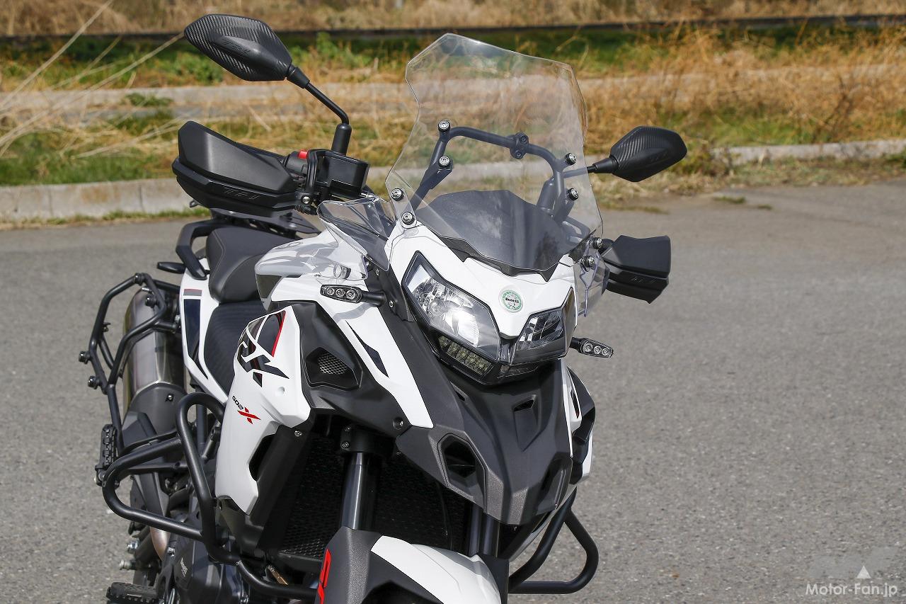 イタリアでベストセラーとなっているベネリTRK502Xのスタイリングは、ひと目でアドベンチャーツアラーとわかる、いってみれば標準的なデザインをしています。500㏄エンジンを搭載していることからミドルクラスに属すモデルで、車格的にも排気量に見合ったサイズだと思います。個性があるというわけじゃないのですが、アドベンチャーツアラーに興味を抱いているライダーには違和感なく接してもらえるはずです。