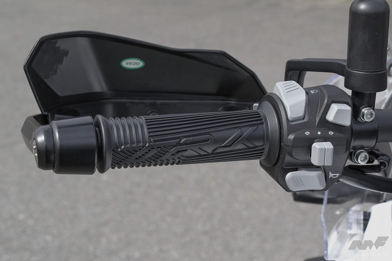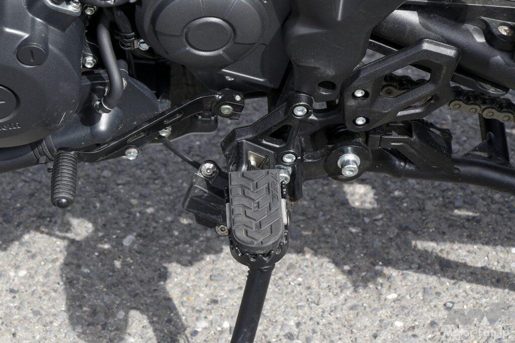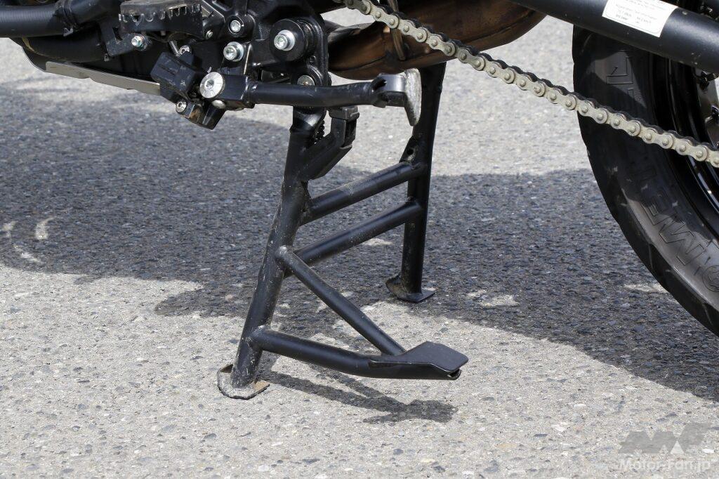 この手のバイクの常として車高が高いことがあるのですが、それによって乗降には気を遣うことになります。サイドスタンドで車体を立てた状態で跨るのですが、跨ぐほうの足を高く上げないといけないのがつらいです。仮にトップケース、パニアケースを装着した状態なら、さらに気をつけて跨る必要があるでしょう。