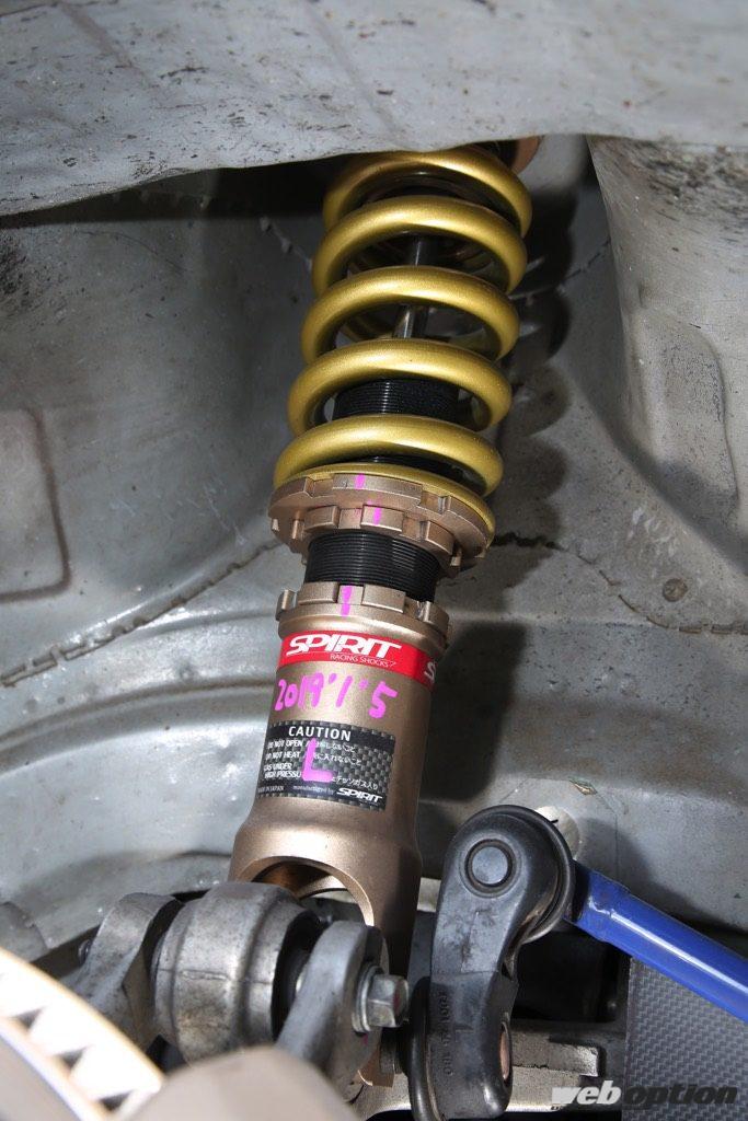 足回りは、スピリット製ダンパーをベースに井入選手が煮詰め上げたオリジナルの“鮫スペシャル”を軸にセットアップ。スタビもレース用の調整式だ。スプリングはエアロパーツのリニューアルに合わせて前後30kg/mmまでレートアップした。