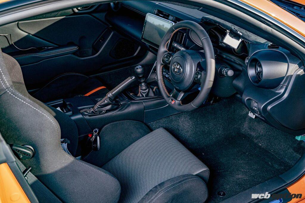 まだ納車されて間もないということもあり、ほぼストック状態のインテリア。GR86特別仕様車RZ“10th Anniversary Limited”専用色となる、フレイムオレンジのステッチが映える。