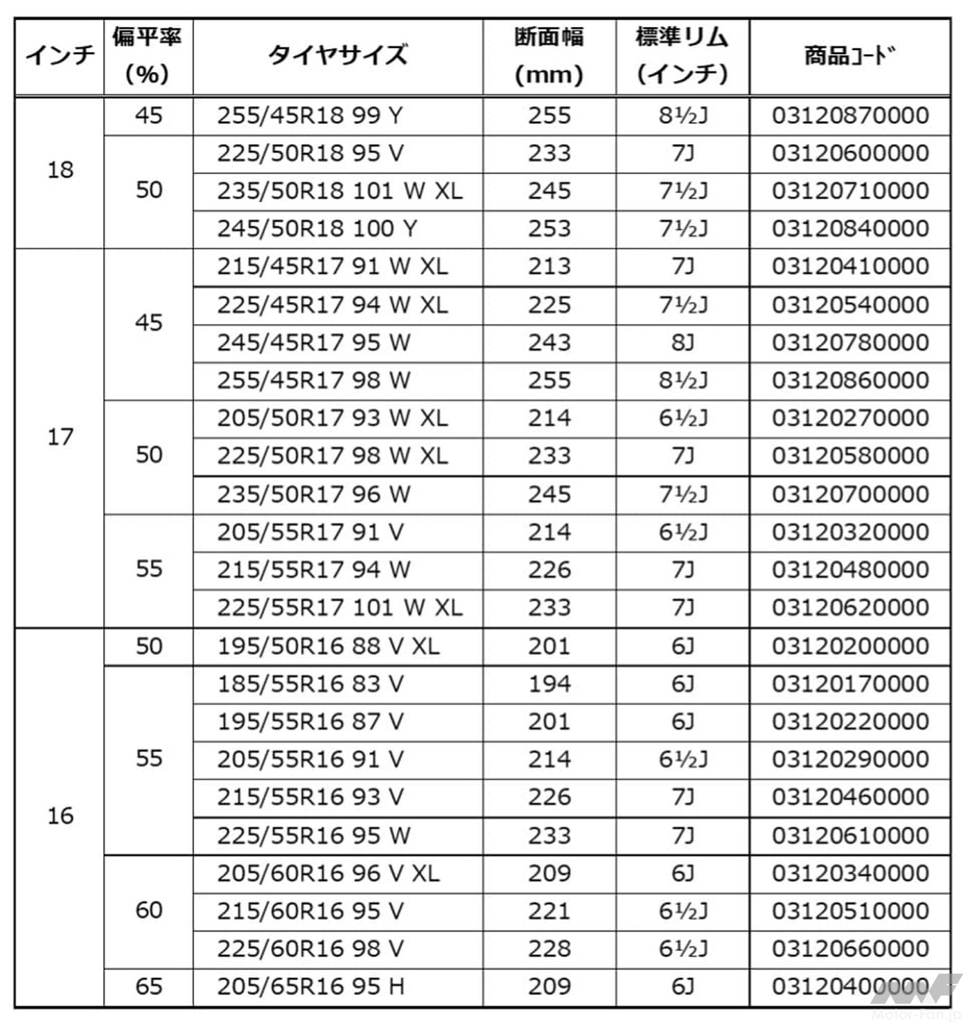 ■コンチネンタル「ウルトラ・コンタクトUC7」サイズラインナップ