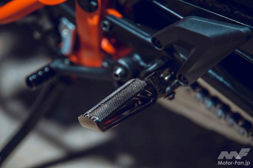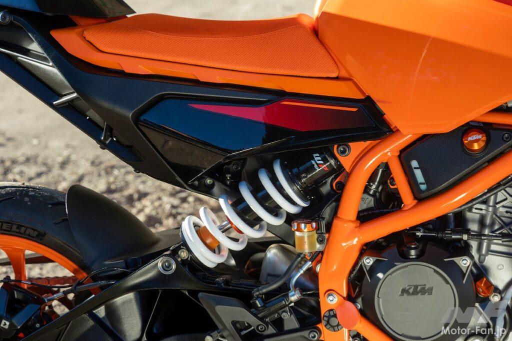 さらに、ライドモード(ストリート/レイン/トラック)やスーパーモトABS、コーナリングMTC、ローンチコントロールなどの電子制御を標準装備し、オプションでクイックシフターも用意。また、KTMコネクトアプリを介して音楽プレーヤーや着信応答、ナビゲーションなどの機能も充実されるなど、30周年記念に相応しい新世代のマシンとして生まれ変わった。