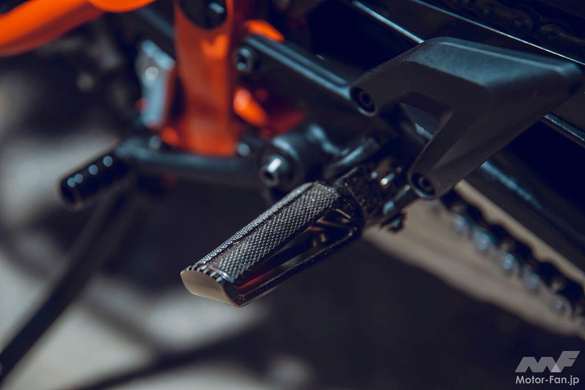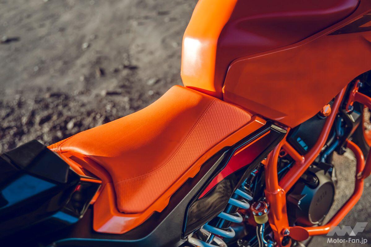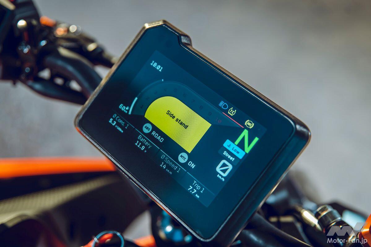 さらに、ライドモード(ストリート/レイン/トラック)やスーパーモトABS、コーナリングMTC、ローンチコントロールなどの電子制御を標準装備し、オプションでクイックシフターも用意。また、KTMコネクトアプリを介して音楽プレーヤーや着信応答、ナビゲーションなどの機能も充実されるなど、30周年記念に相応しい新世代のマシンとして生まれ変わった。
