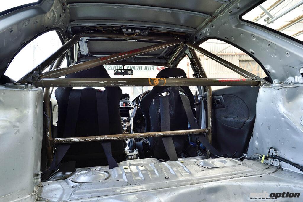 ダッシュボードやメーター類もGDB用をごっそりと移植。「当てがってみたら着いたので(笑)」とは三浦さん。ナンバーレスのサーキット仕様ということで、リヤはシートレスのドンガラ仕様となる。