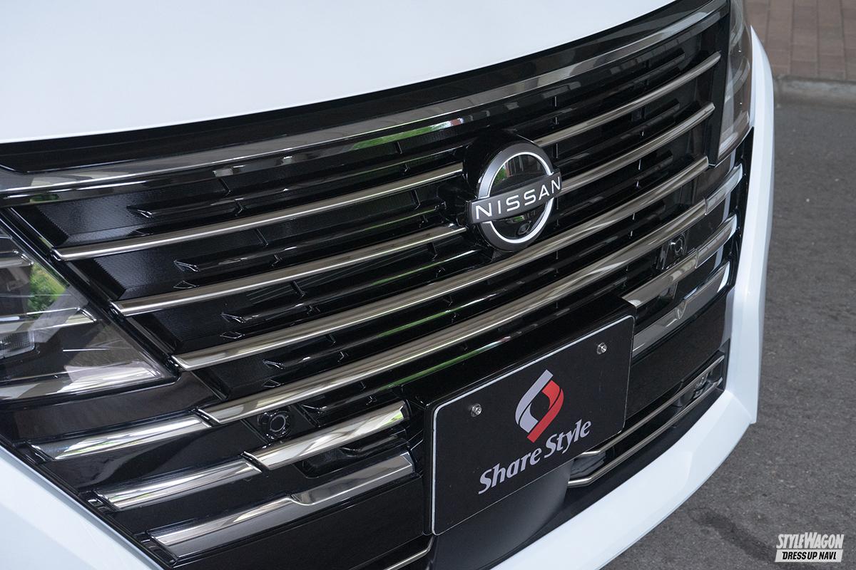 絞り込みを効かせたボディ下部に、華やかさを加えるサイドガーニッシュ。前端、後端の分割式となる左右4ピースセットで、取り付けも簡単。