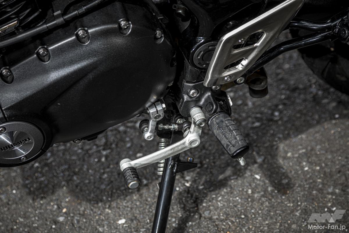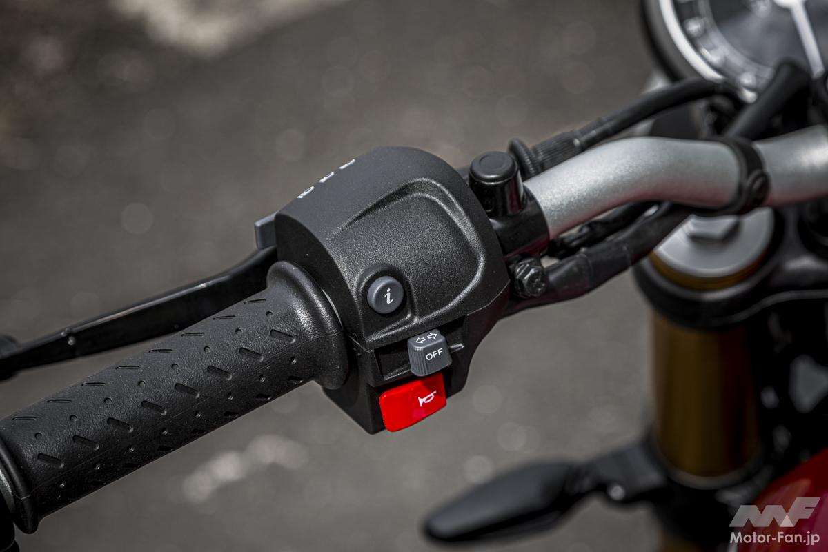 ただしエンジンのクランクマスを大きめには取っていないので、同じシングルでもGB 350のようなイージーさはない。低速走行中に少し高めのギアでクラッチを繋ぐとエンストしてしまうこともある。