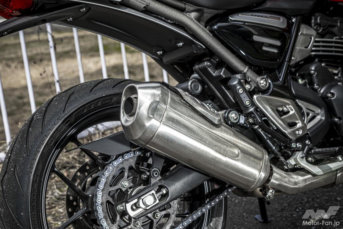 実車を見てみると質感もビックバイクに負けないくらいに高く、細かい部分を見ていっても安っぽい感じがない。トライアンフの美しさがギュッと濃縮されたようなマシンである。