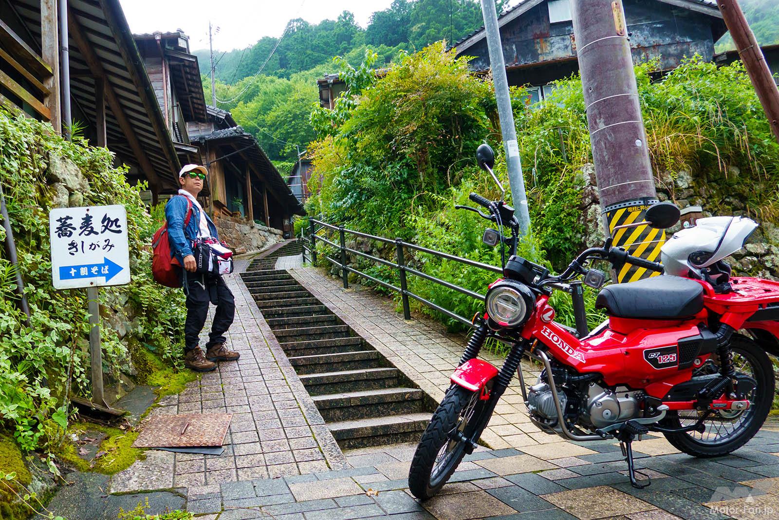 峠に強いCT125ハンターカブは、雨上がりの箱根をパワフルに駆け上がる。さすがにエンジンはやや回しぎみだが、中低速トルクたっぷりだからブン回す必要はない。きつい上りのあとには必ず同じ標高差の下りがあることを思えば、多少のアップダウン程度なら、いちいち燃費を気にすることもなさそうだ。