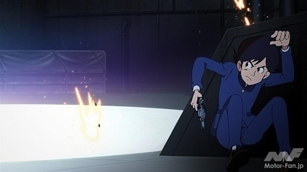 もちろん、『ルパン三世』と言えばクルマやオートバイ、銃器などのリアルなメカニズム、アニメならではの誇張とディフォルメを生かしたアクション、そしてハードボイルドタッチな世界観にスラップスティックギャグを加えた独特な作風なども今作に引き継がれている。