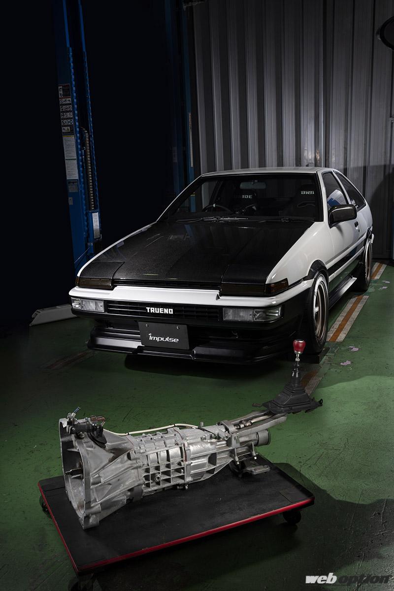 ちなみに、AE86の中古MTは入手困難な上に、2〜3速のシフトチェンジではシンクロの弱さからギヤ鳴りに悩まされやすい。重量こそZN6/ZC6の6速MTよりも10kgほど軽いが、クロス化や強化ギヤ、6速クルーズの快適性を考えれば、オリジナルに固執する必要はないだろう。